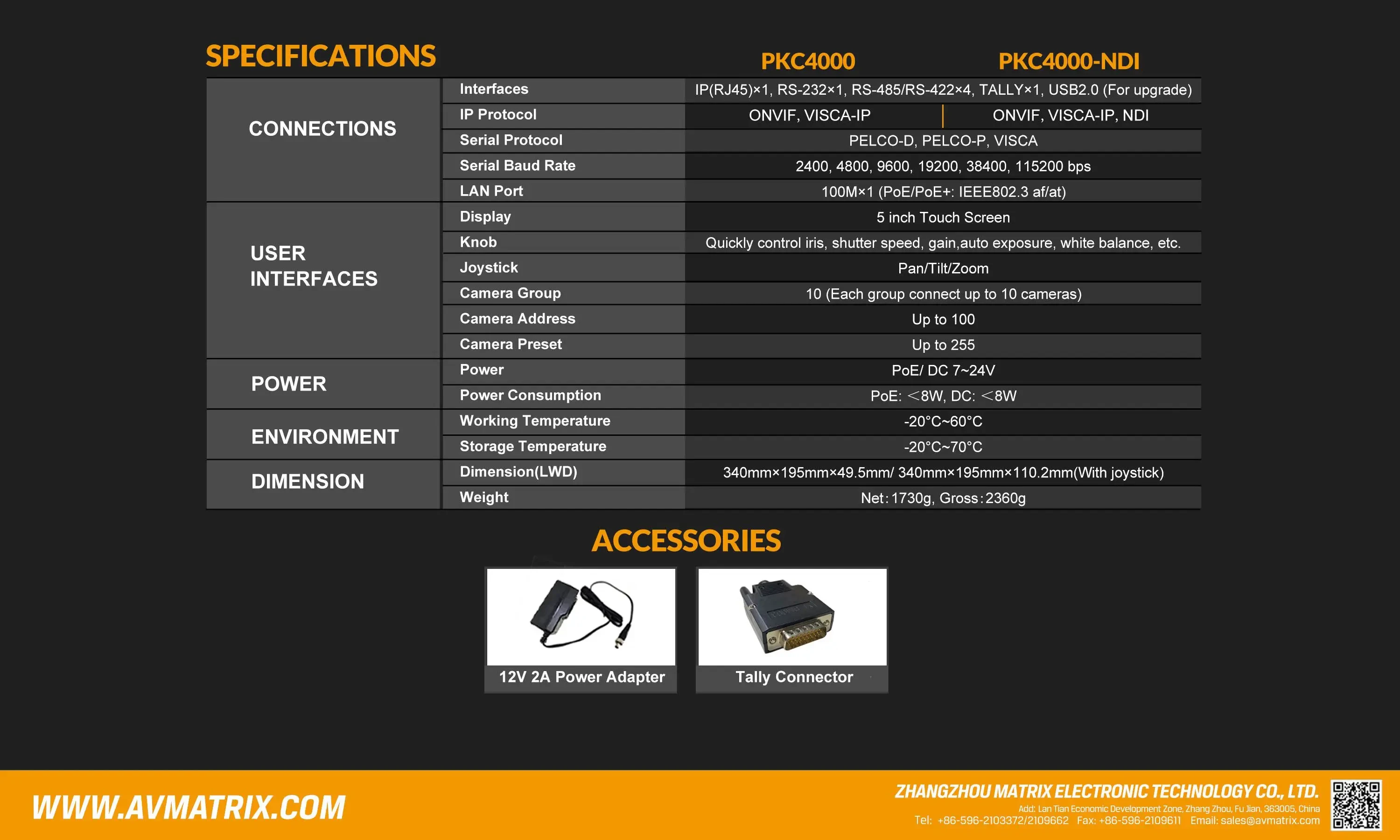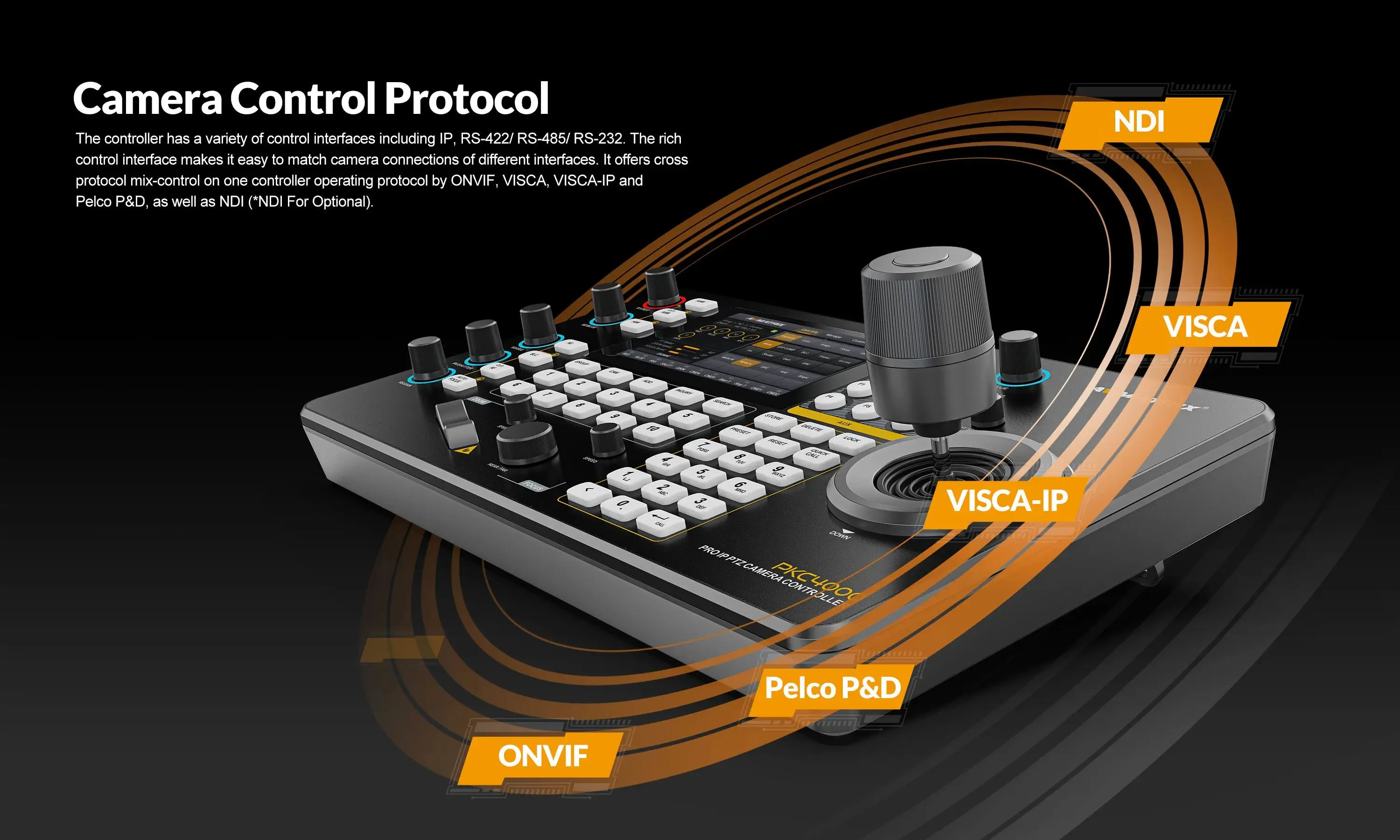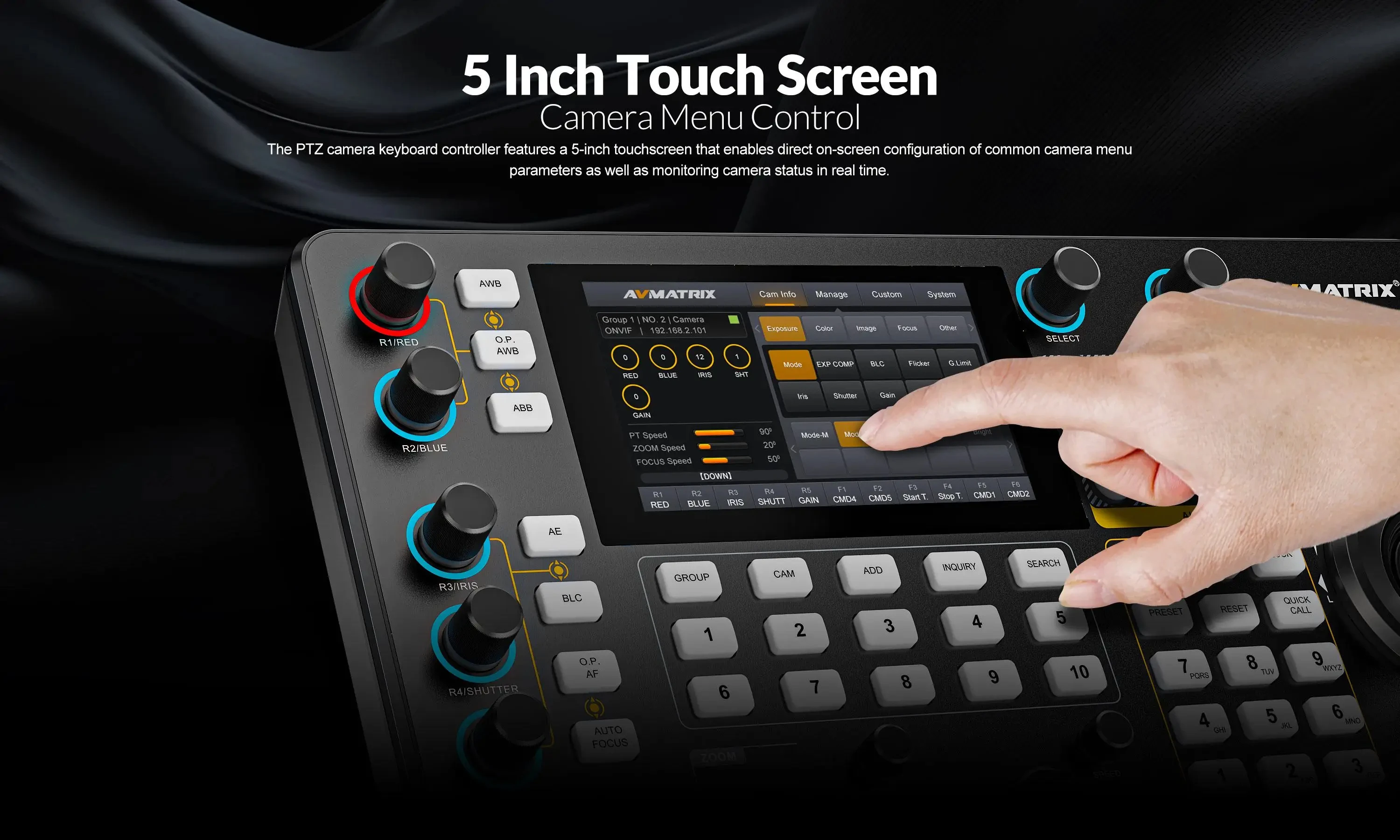 AVMATRIX PKC4000-NDI PTZ Camera Controller Keyboard Joystick 5 inch Touch Screen