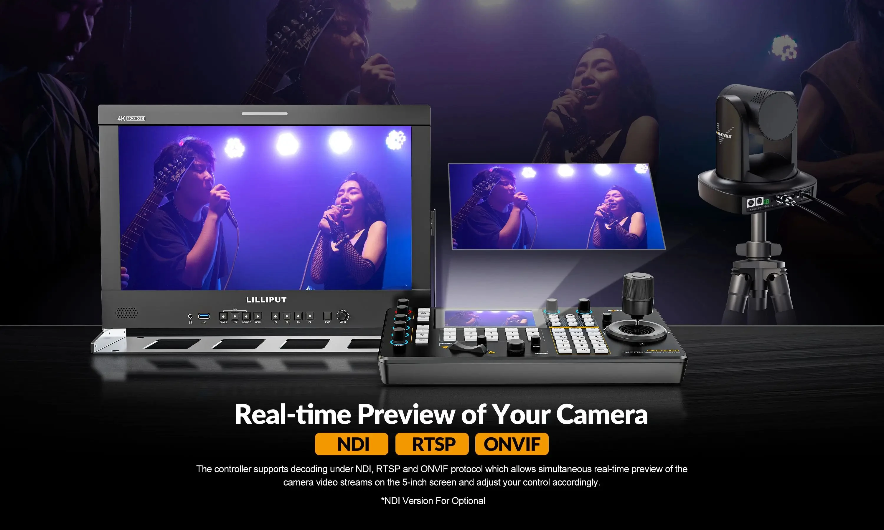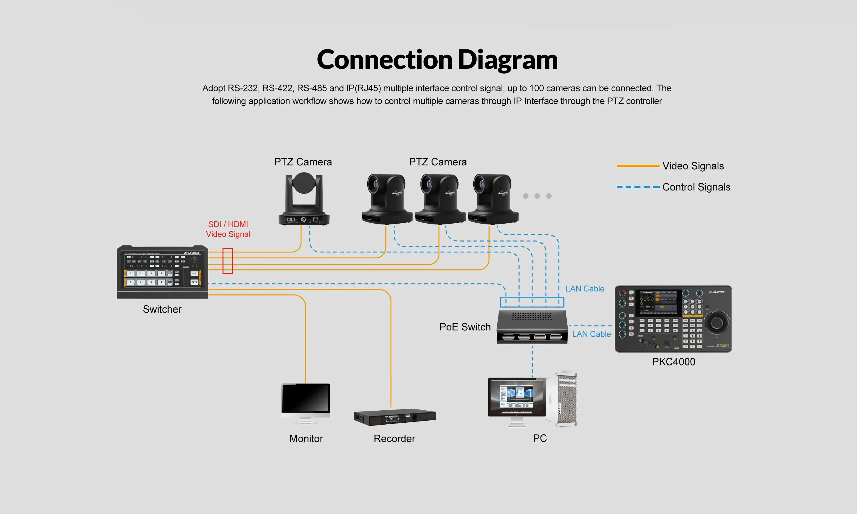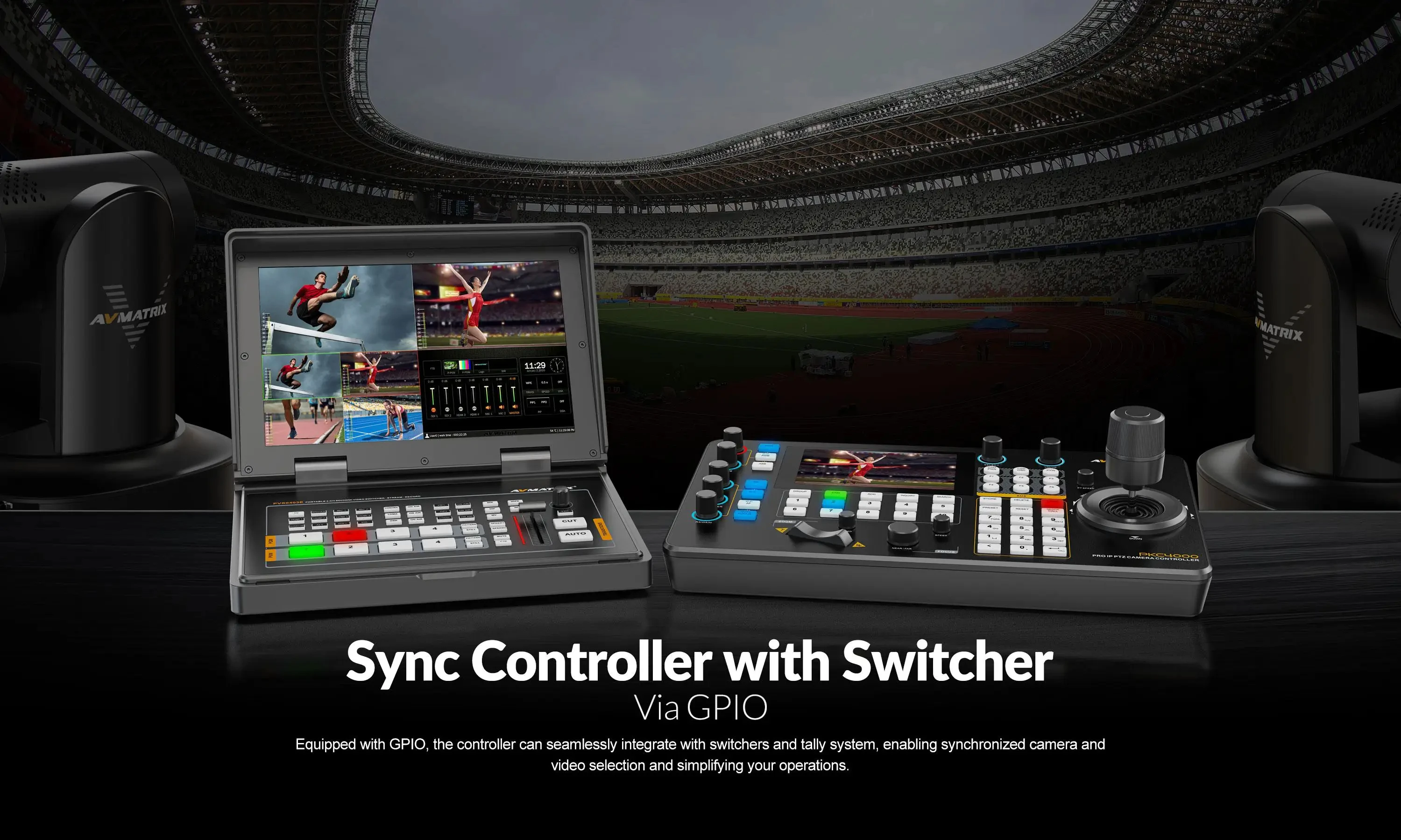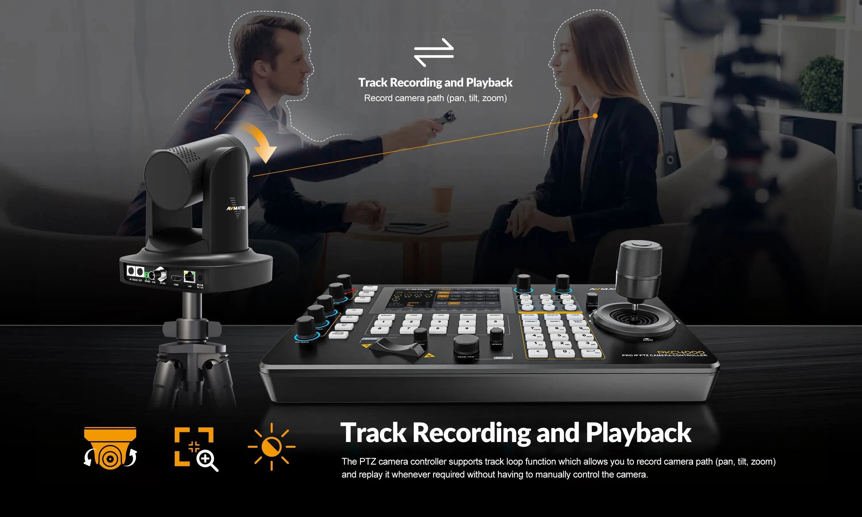 AVMATRIX PKC4000-NDI PTZ Camera Controller Keyboard Joystick 5 inch Touch Screen