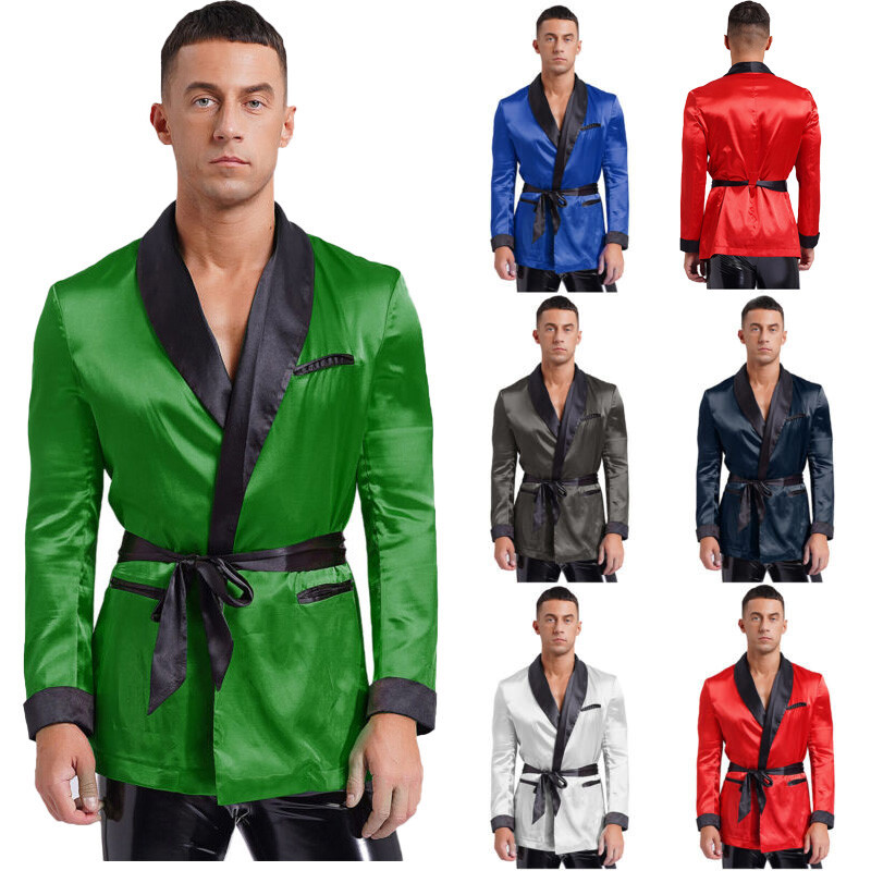 Satiny smoking jacket robe can match with vest, tank top, pajamas pants and shorts, let you enjoy the relaxing time to the fullest.
