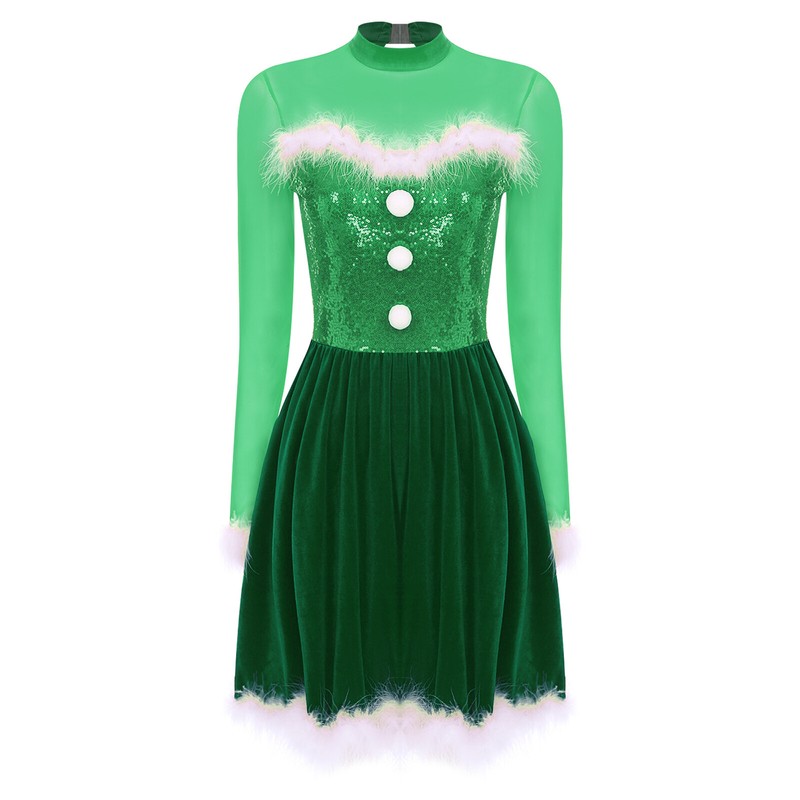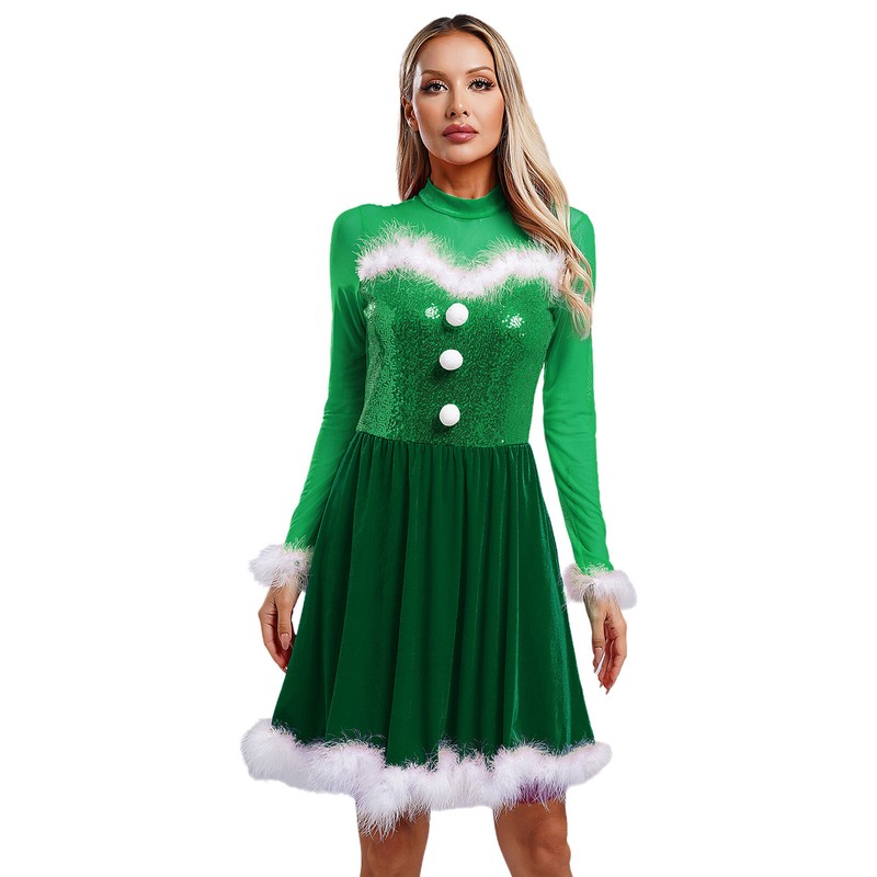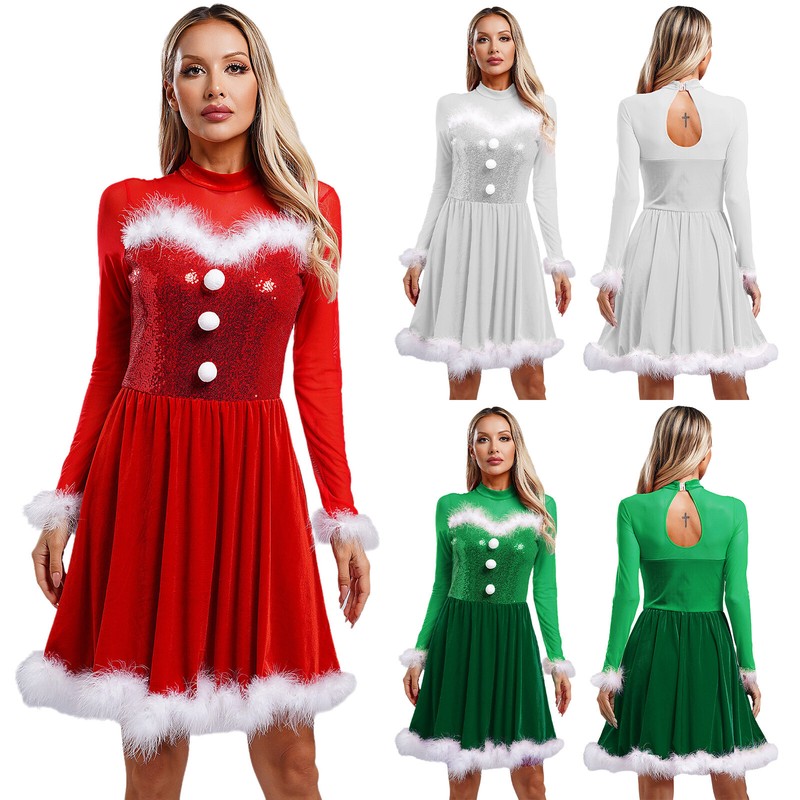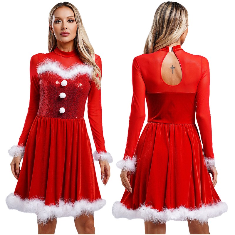 Classic contrast design, pompoms, sequins and fuzzy feather trims are full of Christmas atmosphere, dressing up you as a beautiful Mrs. Claus.