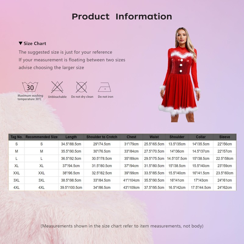 Suitable for Christmas, masquerade, themed party, Santa Claus costume, stage performance, photograph, nightclub, carnivals, etc.Size Chart: The suggested size is just for your reference. If your measurement is floating between two sizes, advise choosing the larger size. (Measurements shown in the size chart refer to item measurements, not body)