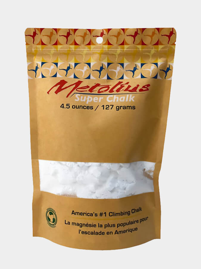 Classic Super Chalk with eco-friendly, biodegradable packaging Metolius' classic Super Chalk, now with eco-friendly, biodegradable packaging.