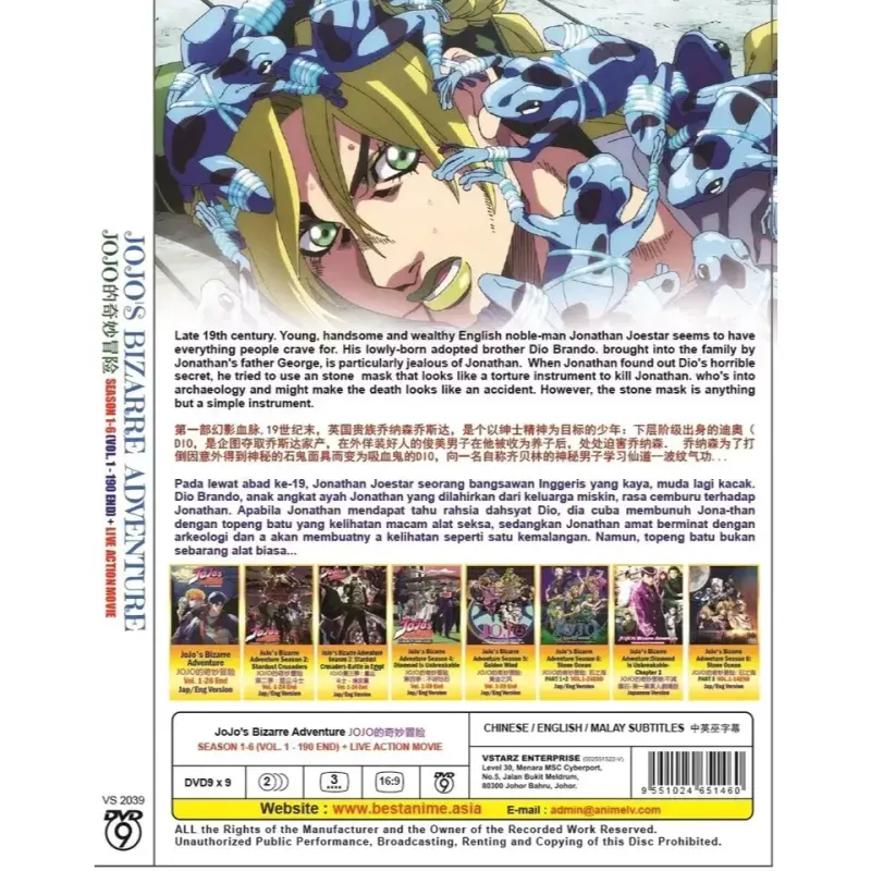Title Name : JoJo's Bizarre Adventure TV Series Season 1-6 Vol.1-190End+Live Action Movie