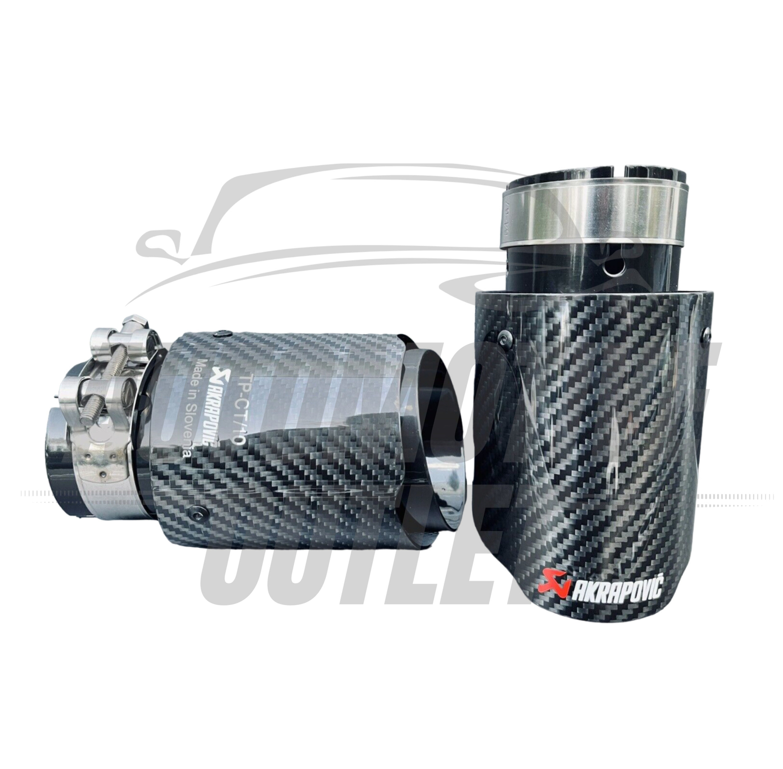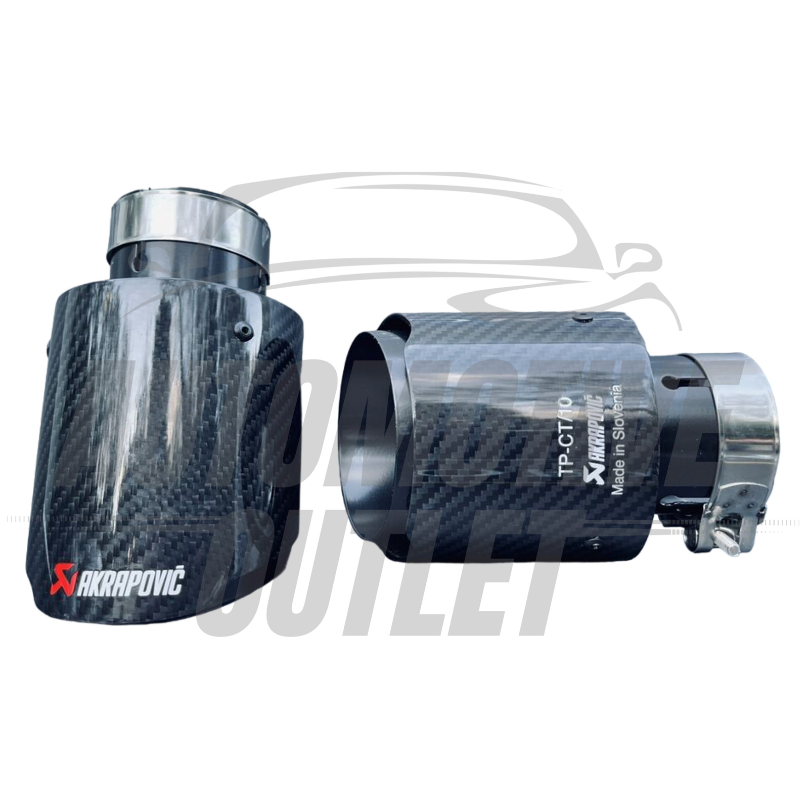 Upgrade your vehicle's rear profile with this pair of Akrapovic-style exhaust tips. Each tip features a carbon-fibre finish and delivers a premium, motorsport-inspired look.