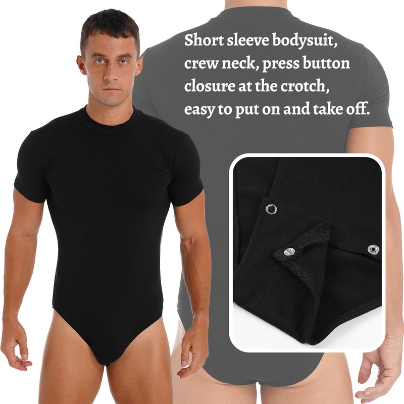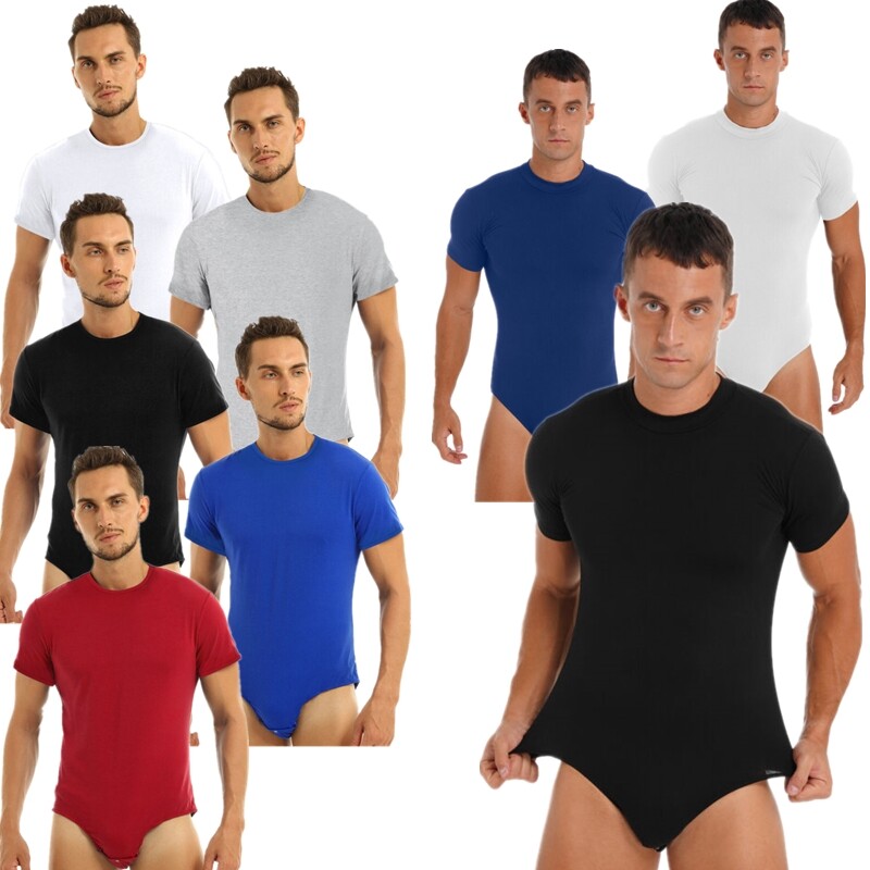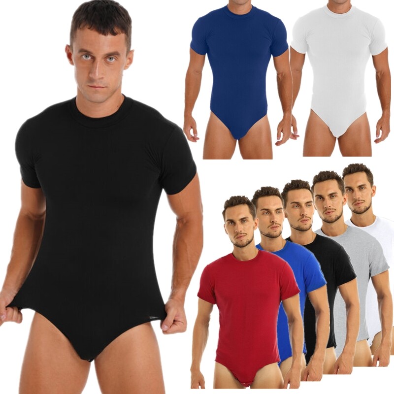 Mens Leotard Undershirt Press Button Crotch Bodysuit Tops Casual Jumpsuit Blouse