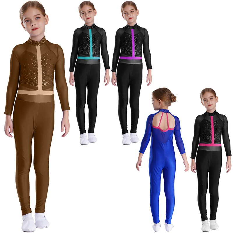 US Girls Diamonds Adorned Ballet Dance Athletic Unitard Skating Leotard Bodysuit