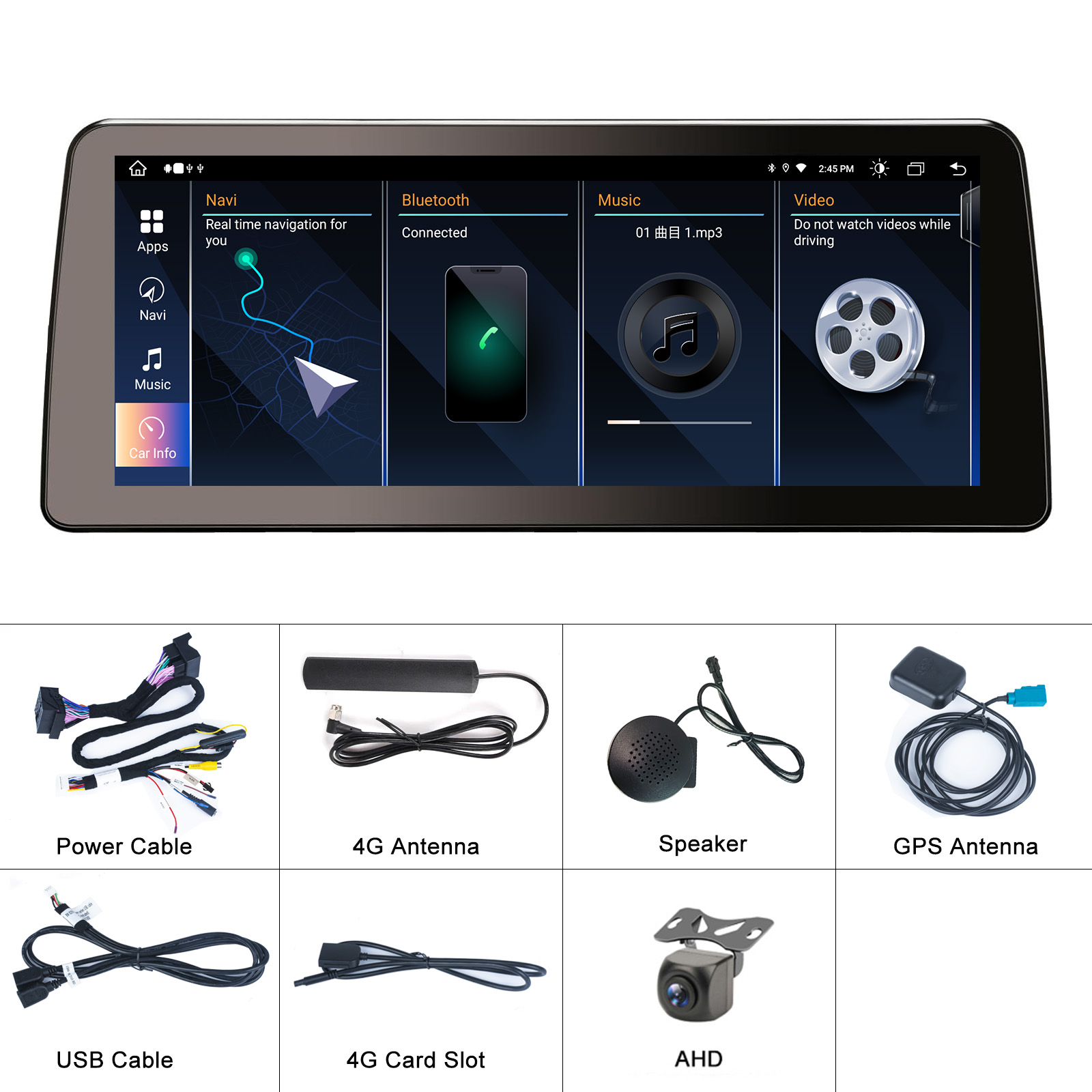●8-core high-definition 12.3-inch capacitive screen running fast radio player, 1280*720high resolution