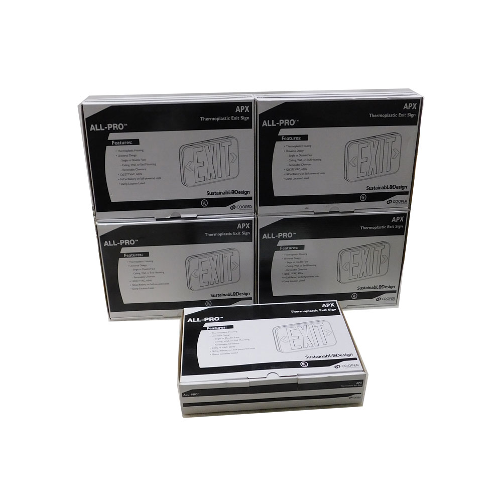 (Lot of 5) NEW Cooper Electric APX7R Self-Powered LED Exit Signs Red Lettering