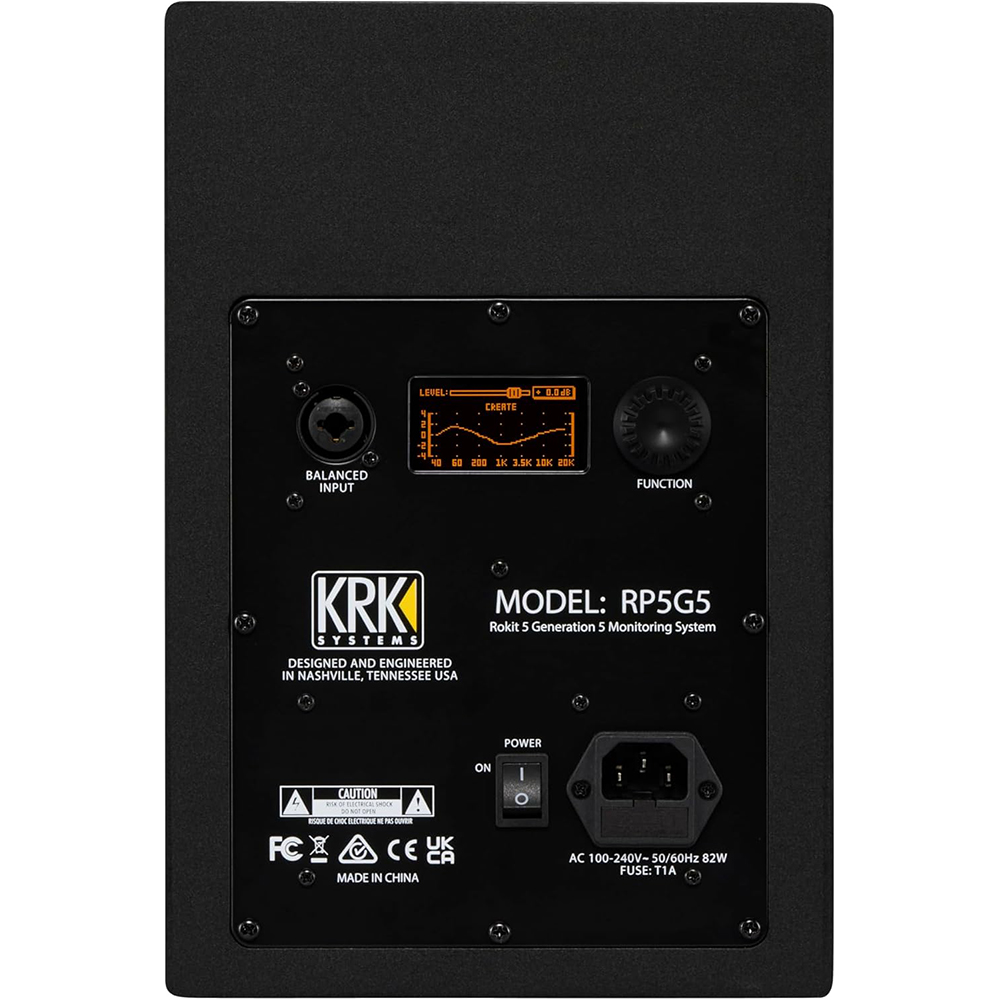The ROKIT 5 G5 has been reengineered from the ground up to offer updated features such as DSP-driven room tuning with 25 graphic EQ settings on an LCD combined with the included KRK app that helps minimize and correct problems in your acoustic environment. Bi-amped and sporting up to 55W of Class-D amplification, the ROKIT 5 G5 has enough juice to provide accurate transient response and dynamic reproduction of audio material without overworking the drivers. The ROKIT 5 G5 includes a magnetically affixed faceplate, an acoustic foam wedge isolation pad, and a power cord.