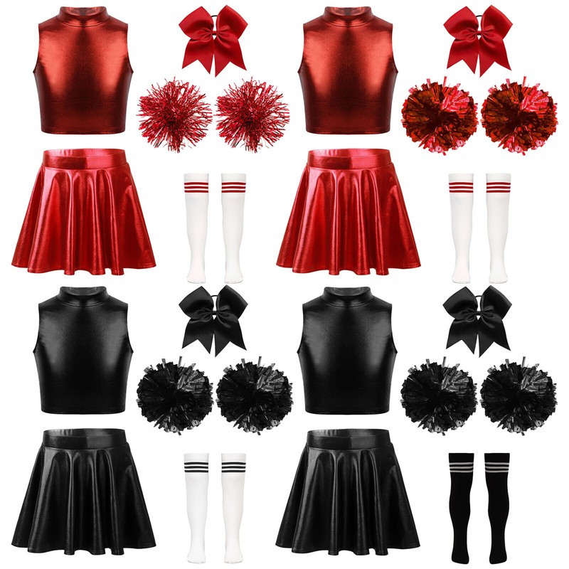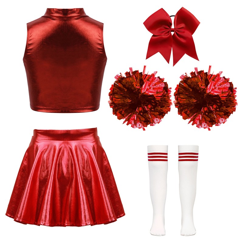 Kids Girls Cheerleading Dance Outfit Bowknot Headwear Crop Top With Skirt Soft