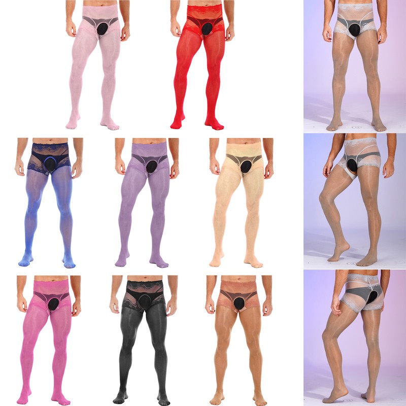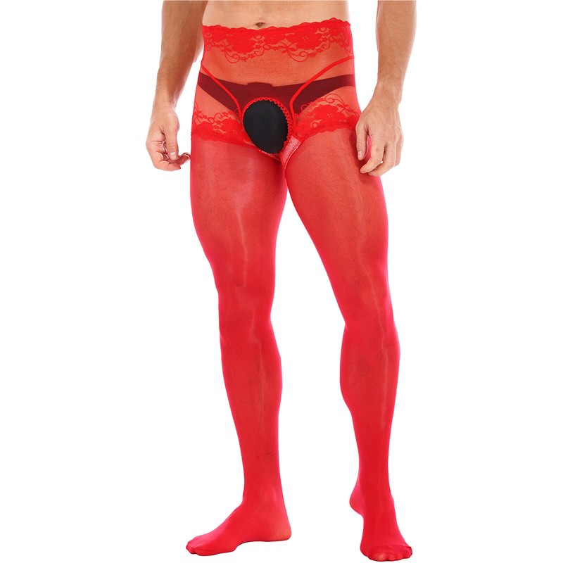 Men Floral Lace See-through Crotchless Mesh Pantyhose Stockings Sissy Nightwear
