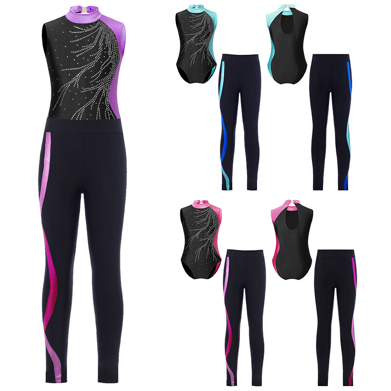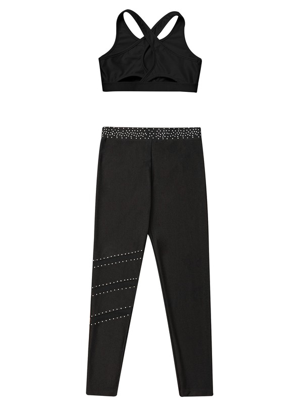 US Kid Girls Sports Set Comfortable Crop Top With Leggings Yoga Criss Cross Back