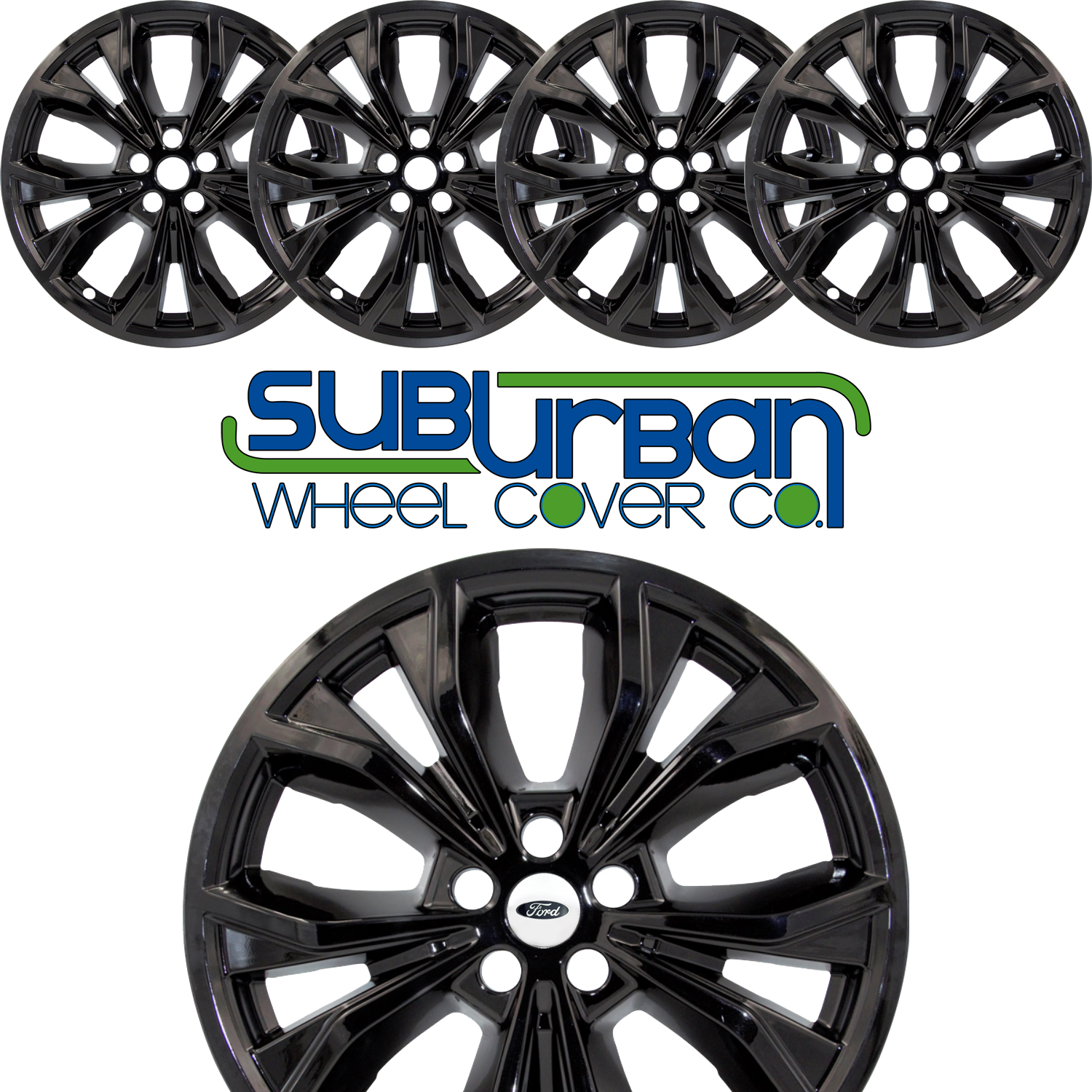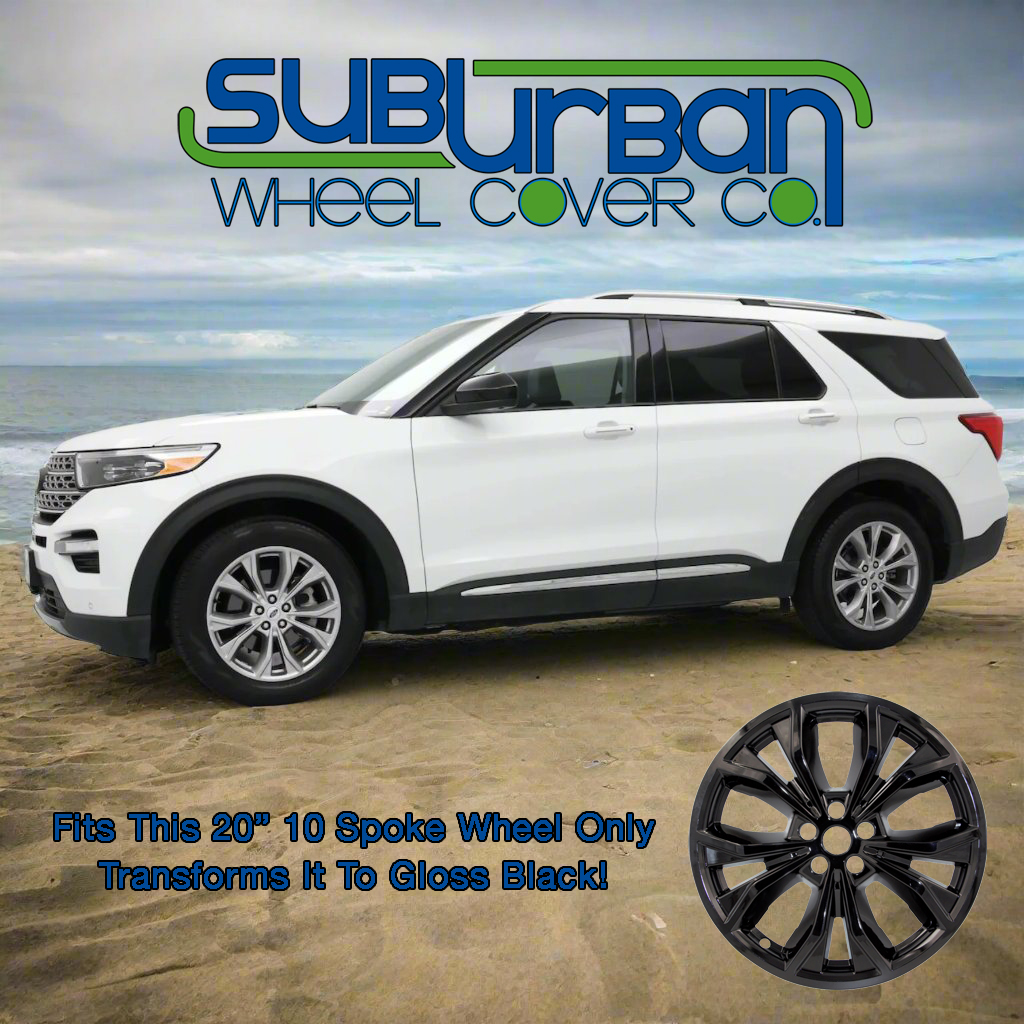 This listing is for a set of (4) brand new gloss black wheel skins for 2020-2024 Ford Explorer XLT and Limited models with matching 20" split 5 spoke aluminum wheels only (see vehicle photo's). These gloss black wheel skins are simple to install and take only minutes to put on. Once installed your Explorer will look as if it has gloss black wheels! These high quality skins are made out of durable ABS painted plastic for a lightweight, long lasting finish. The price quoted is for a full set of 4.