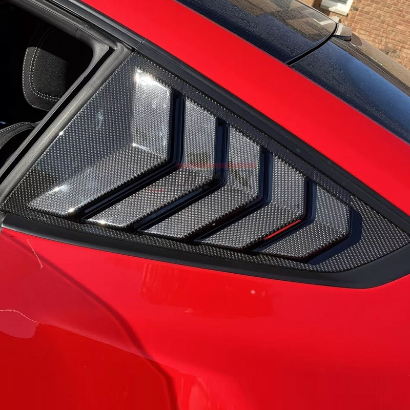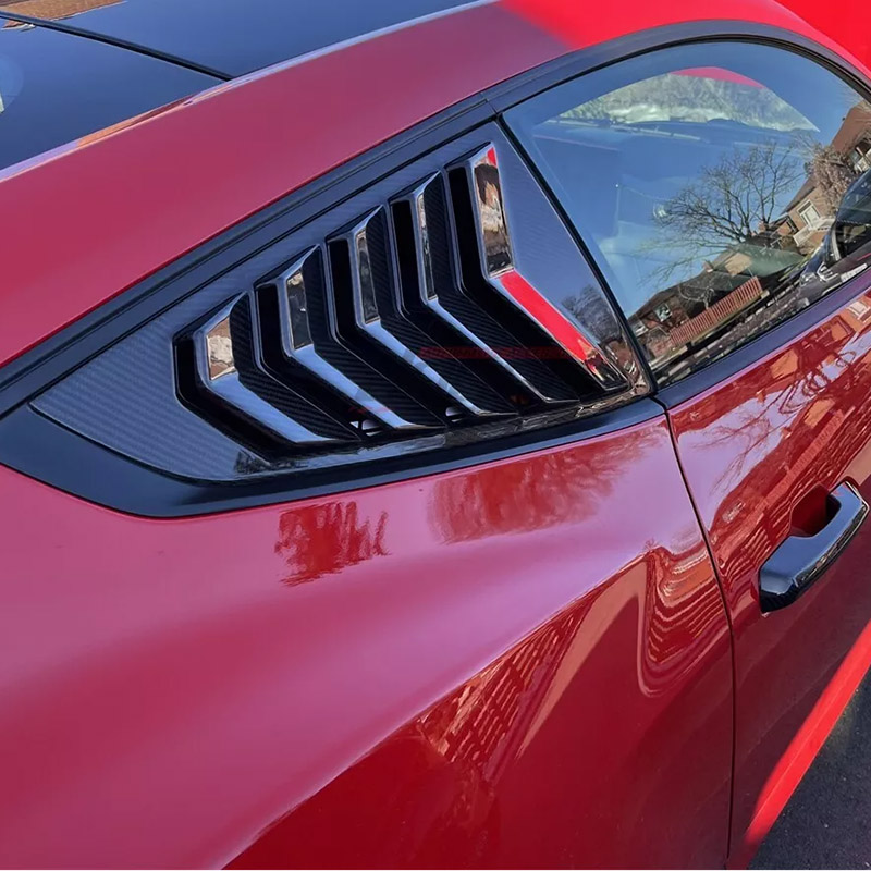 Rear Quarter Side Window Louver Cover Scoops For The S650 Mustang Coupe. The Special Honeycomb Design On The Side and The Smooth Surface Gives You The Sleek Clean Look.