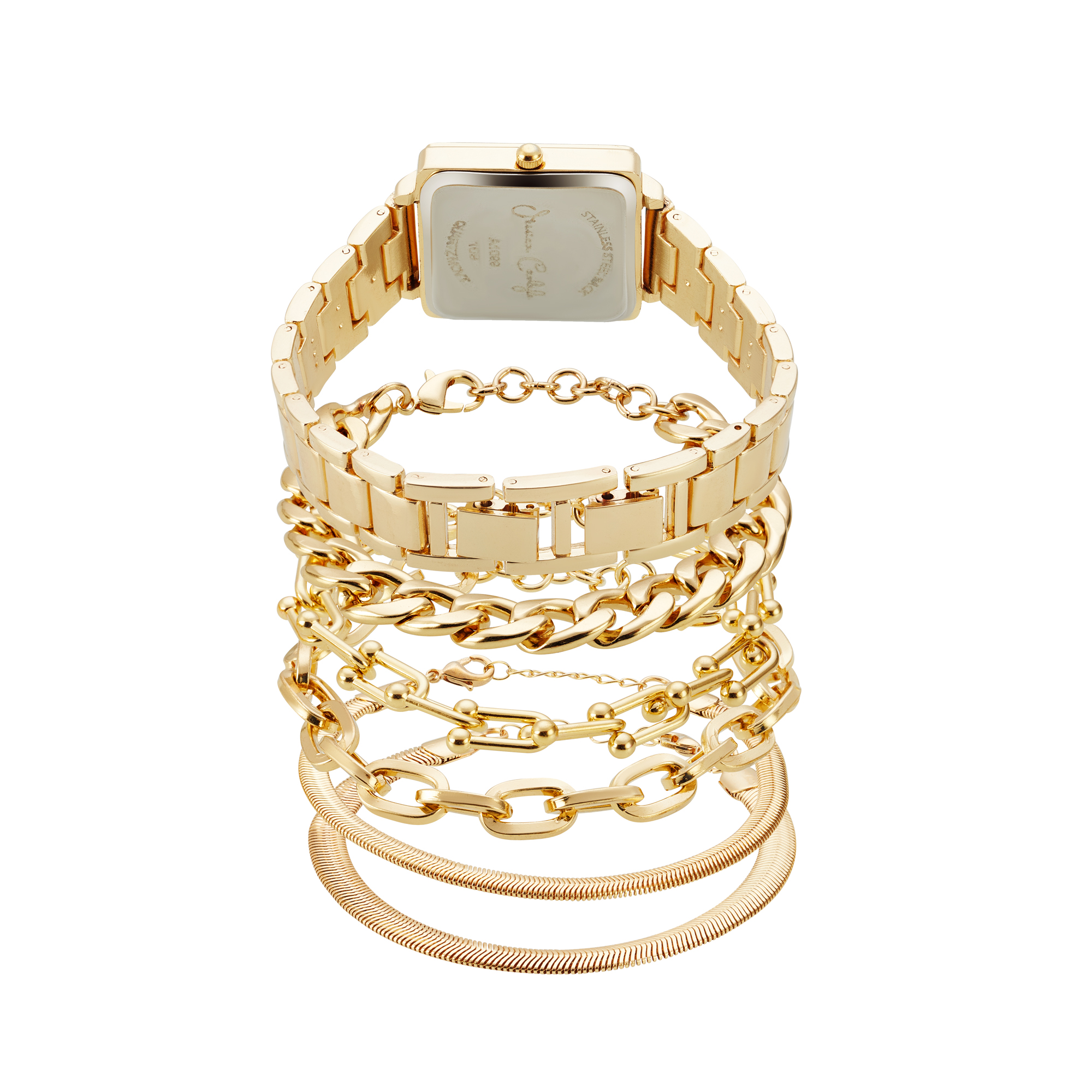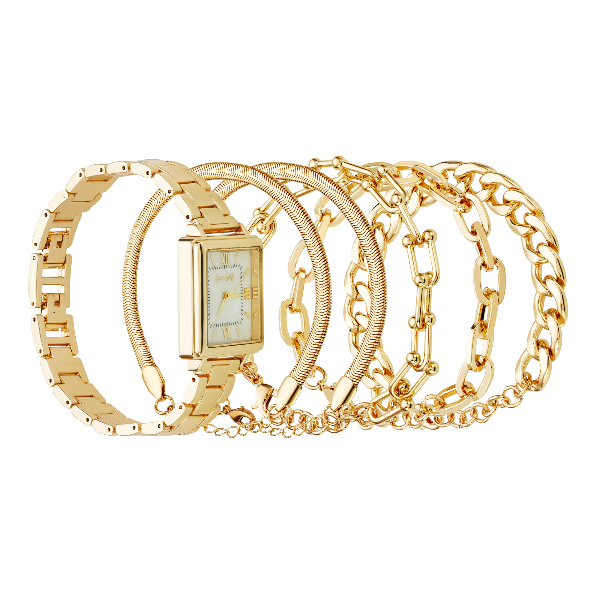 Jessica Carlyle Women's Gold Metal Bracelet Watch 29mm Gift Set