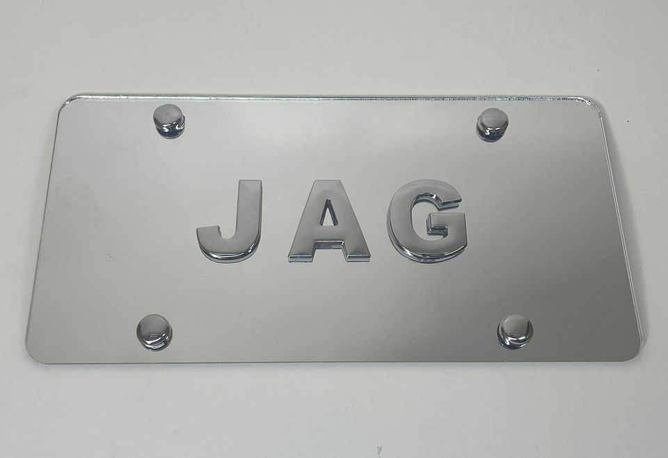 This is for a one of a kind chrome Jaguar license plate tag. (This price is for ONE plate) This polished mirrored acrylic plate is the top of the line with a chrome "JAG" emblem in the center of it.
