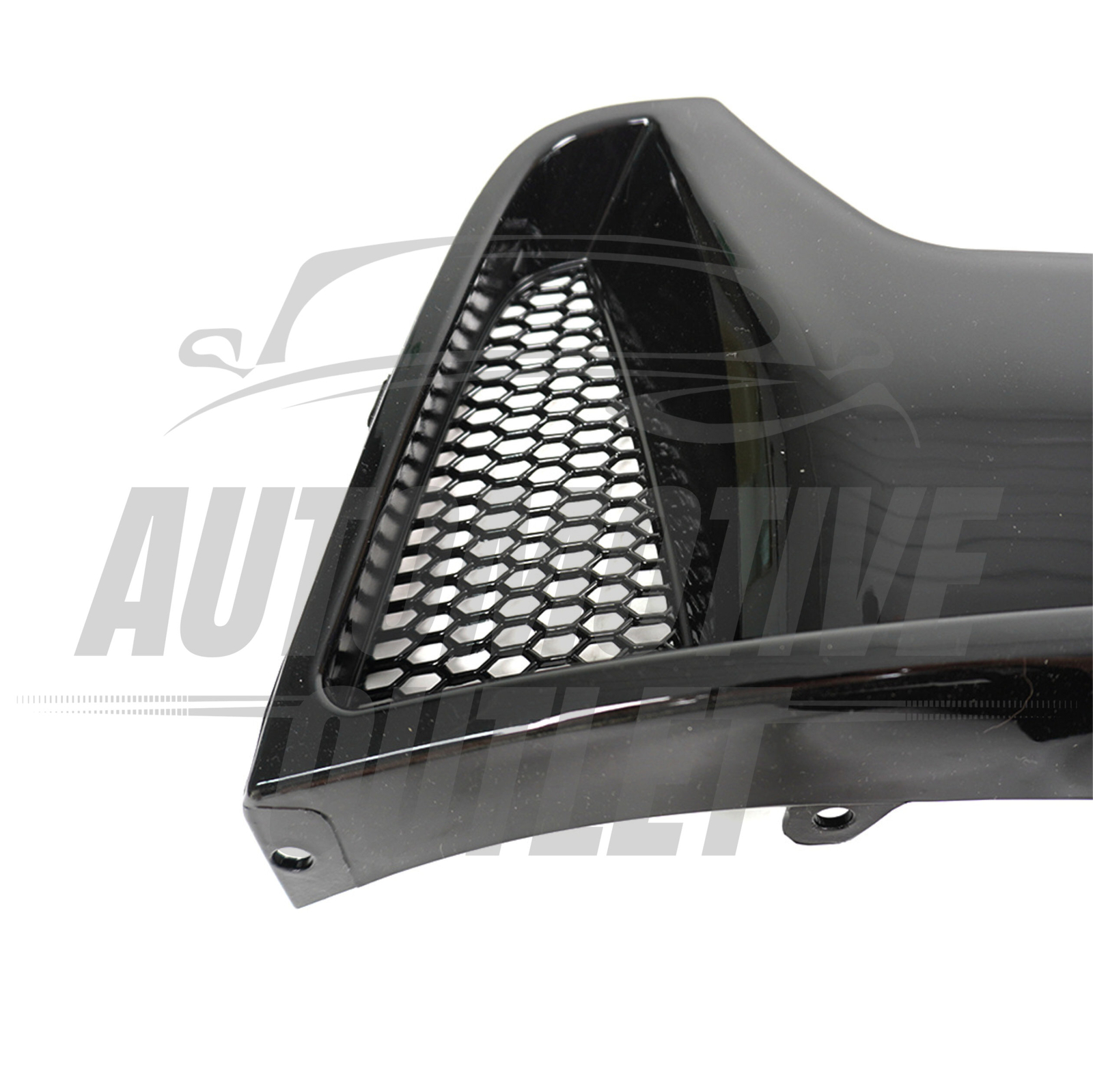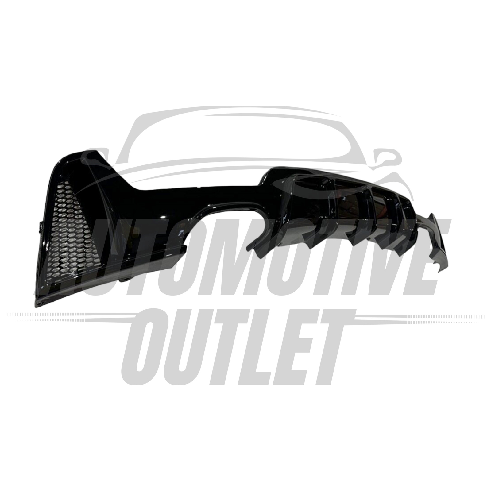 The diffuser is injection moulded from high-quality ABS plastic, ensuring a combination of light weight and durability. It comes in a smooth gloss black finish that matches factory trim and requires no painting. ABS plastic is resistant to weathering and minor impacts.