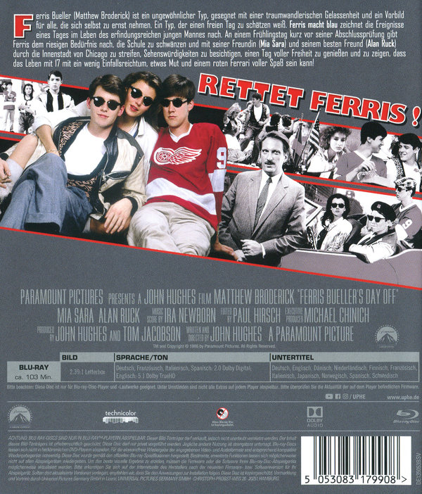 | Besetzung: | Matthew Broderick, Jennifer Grey, Mia Sara, Jeffrey Jones, Alan Ruck, Cindy Pickett, Lyman Ward |