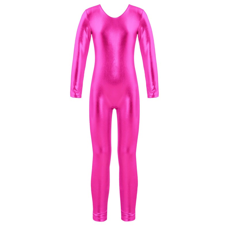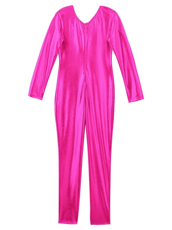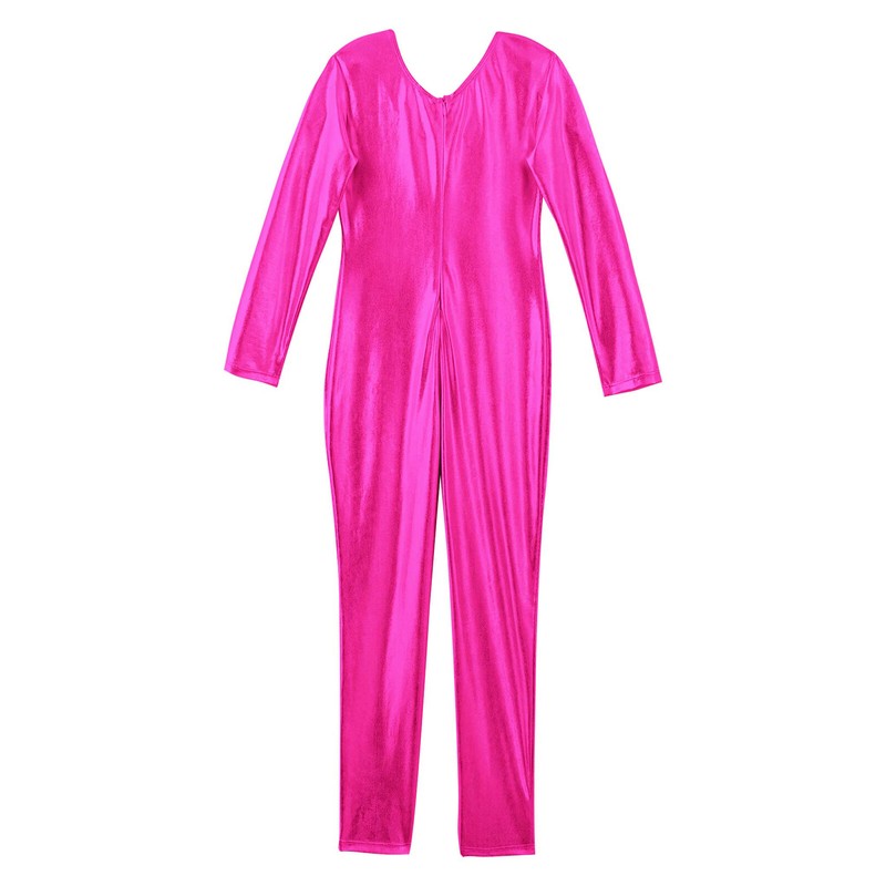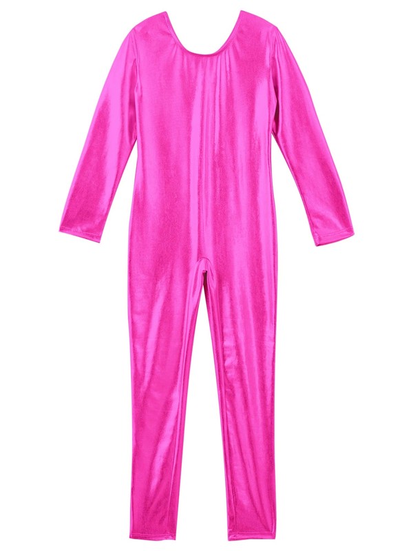 Girls Bodysuit Shiny Jumpsuit Metallic Leotard Sport Unitard Long Sleeves Jazz