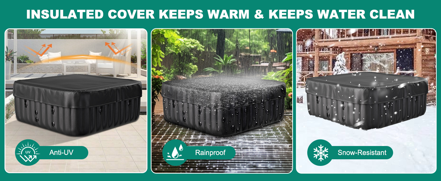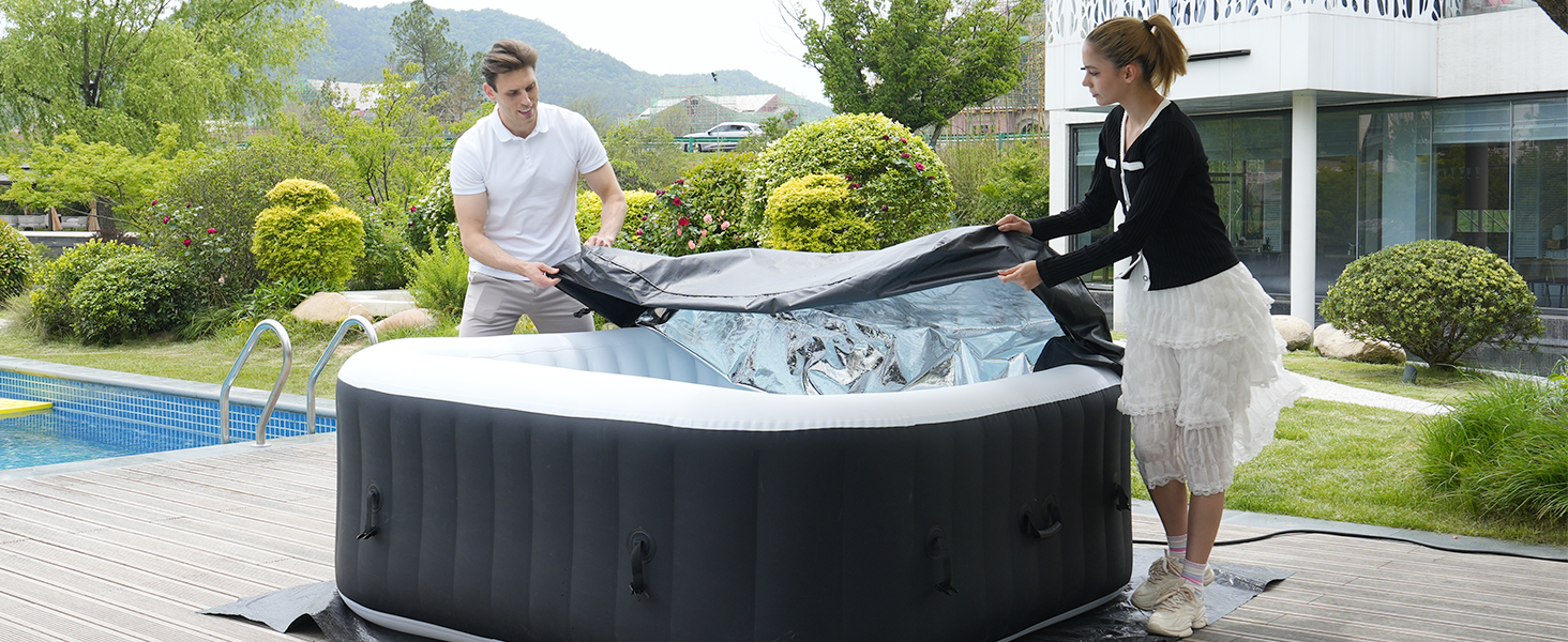 【ATTENTION】Do not drag it when unpacking and packing to prevent the surface from being punctured and damaged by sharp objects. Come with the ground and put it on a flat place which won't hurt your spa.