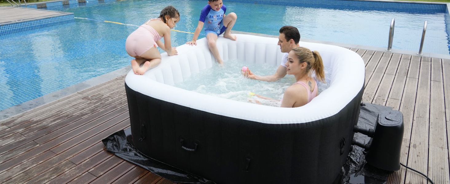 4 Person capacity hot tub create enough space for your family or with friends to enjoy the warmth and bubble massage .