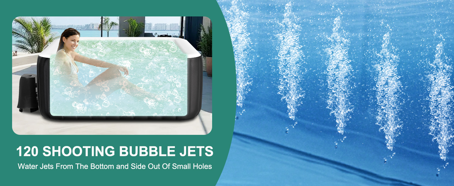 【ENJOY THE ULTIMATE SPA】120 bubbling Jacuzzi after a long, hard day while jets project bubbles to massage your back, neck, and shoulders. Relax at the touch of a button with the 120 surrounding air jets, automatic preheating and integrated water filtration. 2 filters work at the same time to keep the powerful water circulation and clean function.