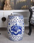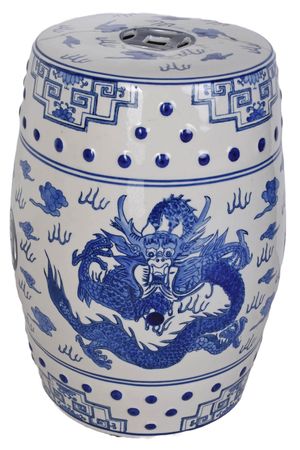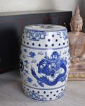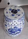 Asiatische Sitzgelegenheit aus glasierter Keramik, Blau Weiss.
