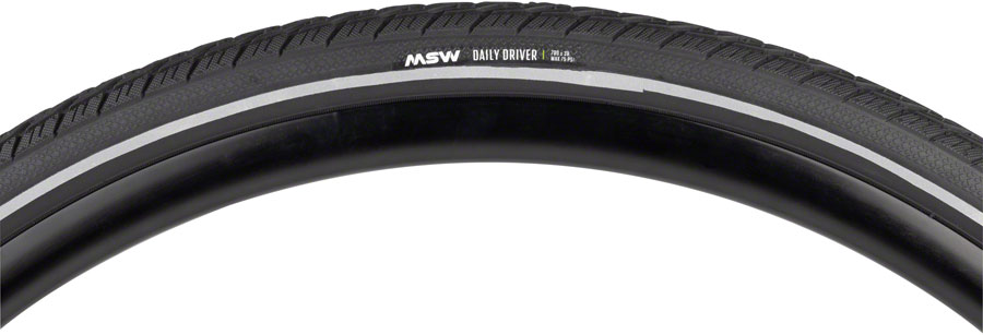 Equipped with a Clincher tire design and a high-pressure rating of up to 75 PSI, the MSW Daily Driver offers quick and easy installation while maintaining excellent air retention. The reflective sidewalls improve visibility during dawn, dusk, or nighttime rides, adding an extra layer of safety on busy city streets.