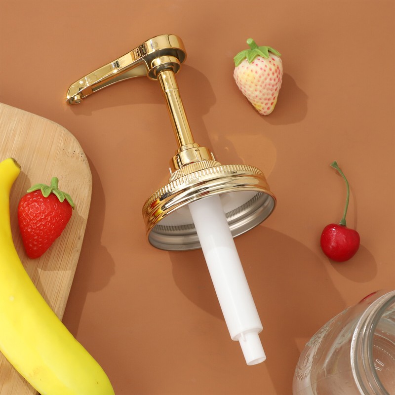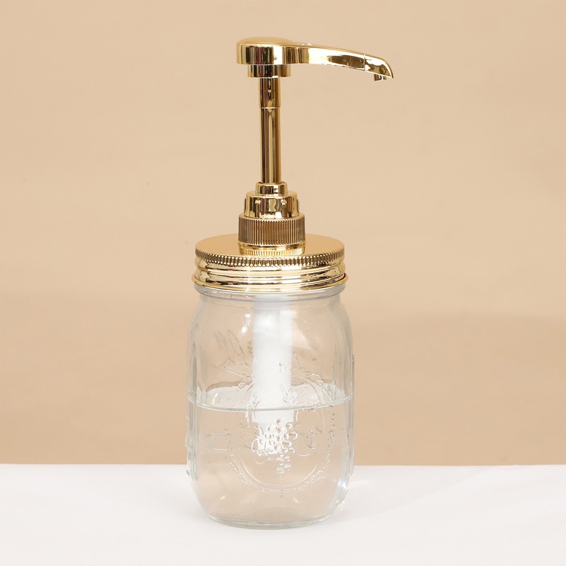 Press pump with attached stainless steel lids is convenient for mason jar, honey or lotion bottle.