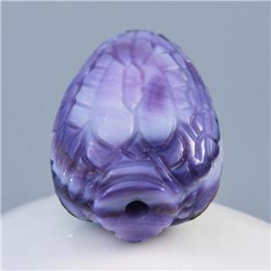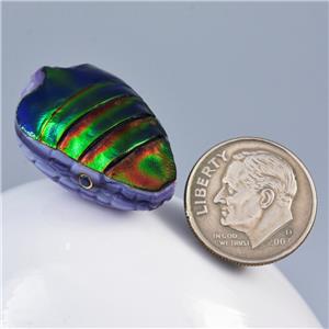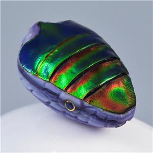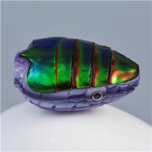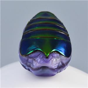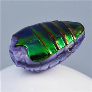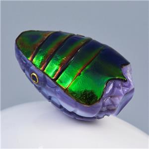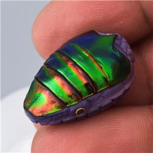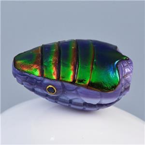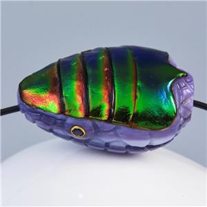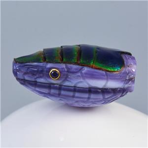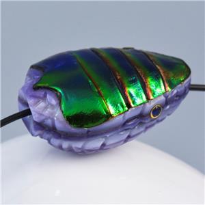 JEWEL BEETLE SNAKE HEAD BEAD CARVED PURPLE CLAM SHELL & BLUE SAPPHIRE GEMSTONE EYES
