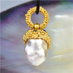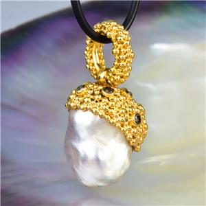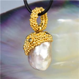 GIGANTIC SOUTH SEA PEARL PENDANT with GOLD VERMEIL over STERLING SILVER & DIAMONDS