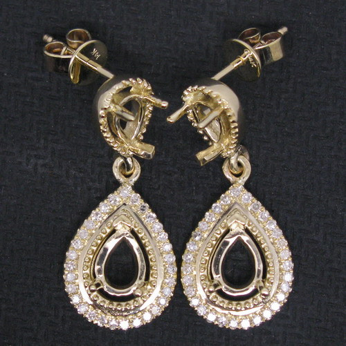 Solid 14K Yellow Gold Natural Diamond Earrings Setting