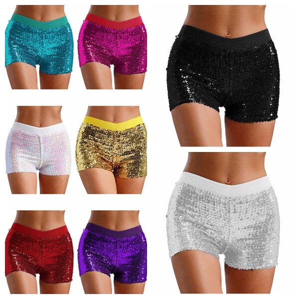 All over with glitter sequins, you will be dazzling and stunning in the crowd. Straight leg shorts show off your leg length.