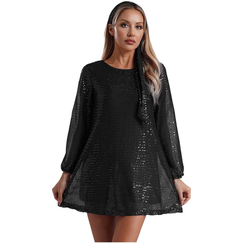 All over with glitter sequins, you will be dazzling and stunning in the crowd. Paired with headband helps to create graceful look.