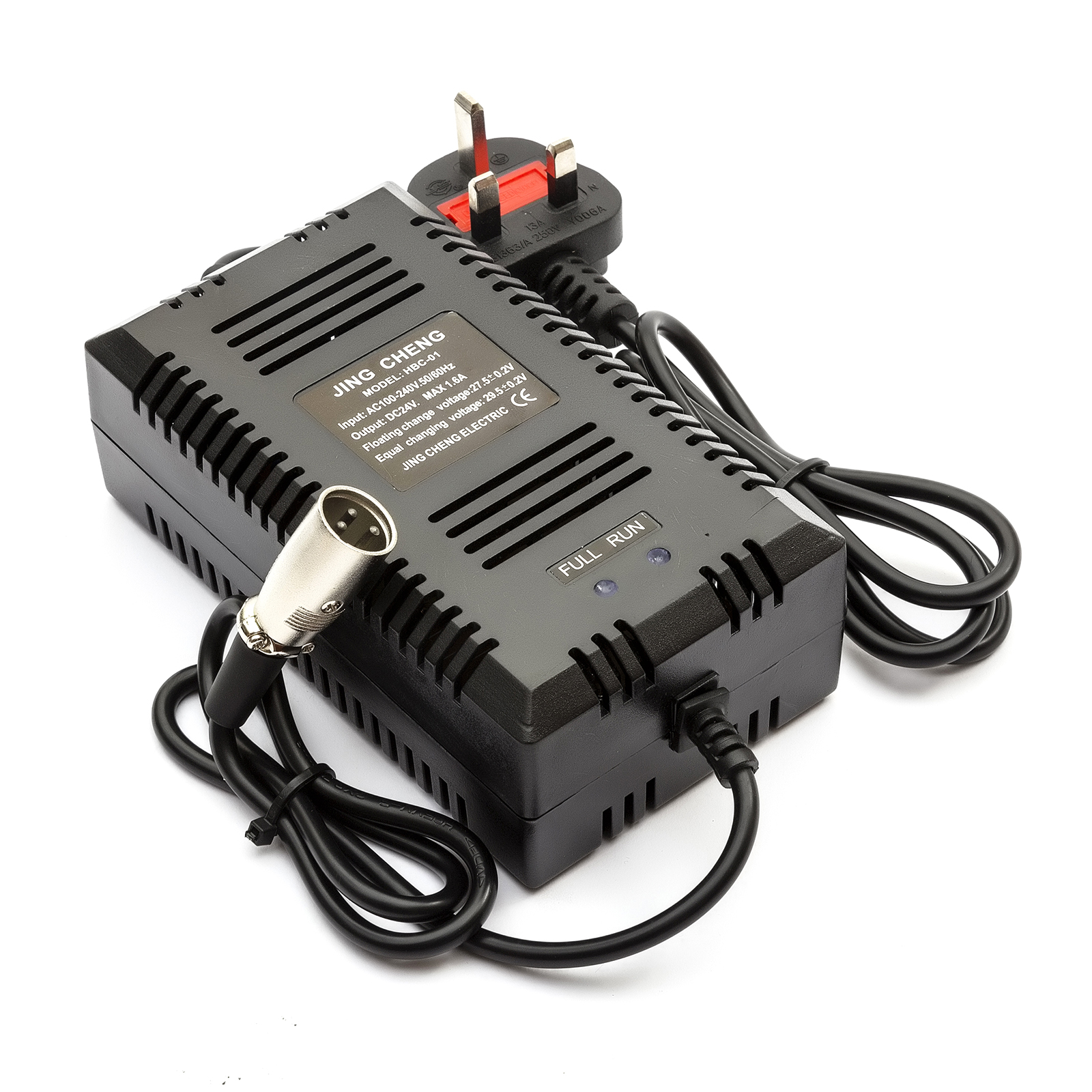 - A standard Battery Charger designed to charge 2 x 12 Volt lead acid batteries installed in Electric Scooters