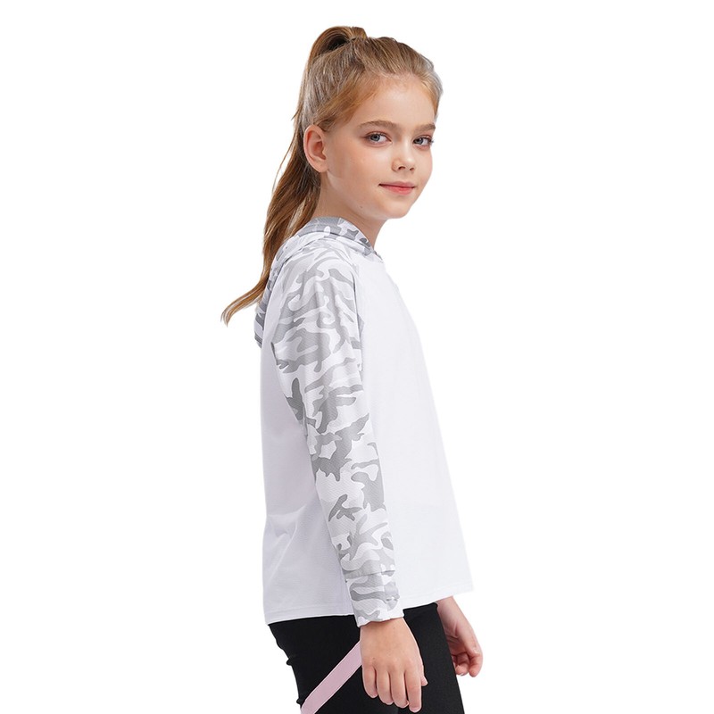 Long sleeve hooded T-shirt for girls, finger holes can hold the sleeves to support free movement, bright colors make your child look energetic.