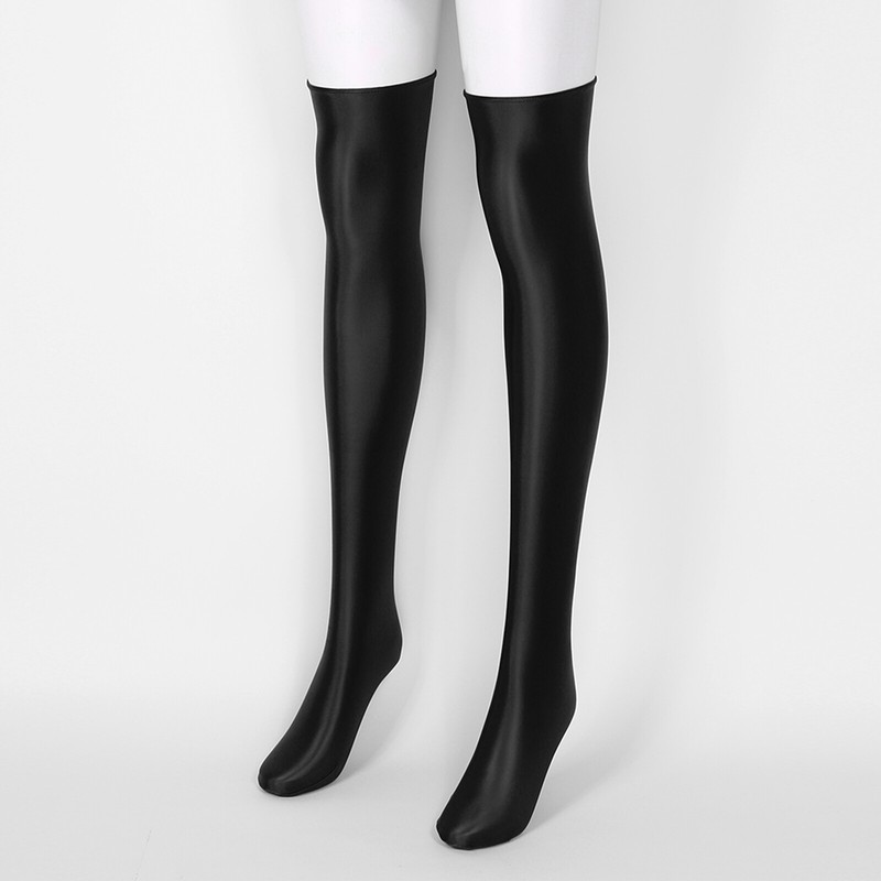 1 Pair Womens Glossy Thigh High Stockings Solid Color Stretchy Socks.