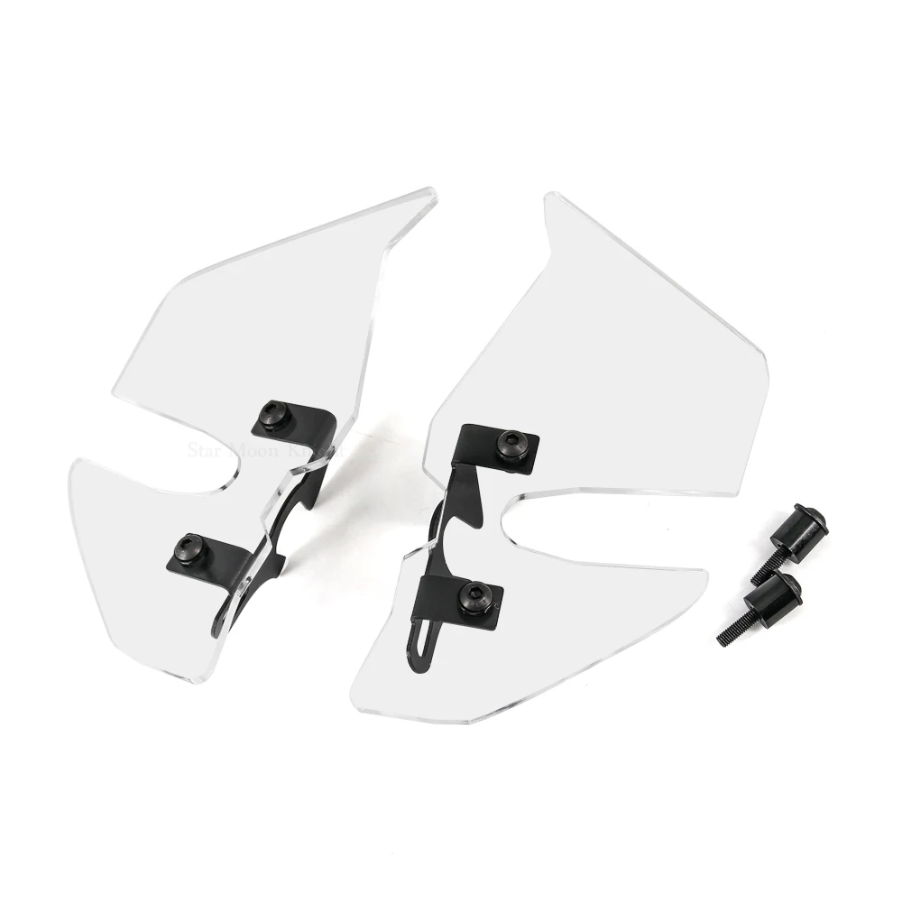 This is a pair of Acrylic side deflectors, brackets and mounting hardware for the 2018-up BMW F750GS and F850GS. They block lower airflow which is below windshield level. Typically this airflow is channeled along the plastic body panels and hits you in your torso creating pressure and turbulence. By deflecting this air to the sides it gives a more calm cockpit and keeps cold air off of your body in cooler weather so you can be more comfortable and extend your riding season! You do not need any other components, this kit is complete and will mount to your bike independently. The small stainless steel brackets attach around the turn signal stem and fasten to a factory mounting hole, so no modification to the bike is needed.