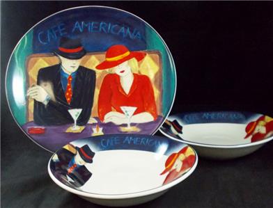 One (1) Dinner Plate and Two (2) Coupe Soup Bowls by Sango in the Cafe Americana pattern 4911