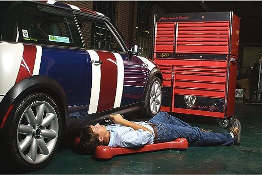 The Bone-ster™ is the lighter, more compact sibling of the original Bone™ creeper that revolutionized working under a car. It is so comfortable and easy to use that you'll wonder why all creepers don't work this well! The first thing you will notice about the Bone-ster™ is a strong family resemblance. The patented “dog bone" shape that cradles the user between the wheels, about 1 ¼" above the ground, making it the lowest on the market! It is a proven design that is more durable, more comfortable, less likely to tip over and easier to work on than any other creeper on the market. The second Bone-ster™ feature to catch your attention is the unique one-piece body that is molded of the same special engineering-grade co-polymer as the original Bone™. It is smooth, comfortable, easy to clean, resistant to gasoline, oil and almost all other common solvents, and is covered by a limited one year warranty. The deep, smoothly molded structural ribs add incredible strength and durability without adding bulk and weight, which provides welcome ventilation for those hot muggy days. Two molded in handholds make it easy to carry and easy to secure against theft or serial tool borrowers. The Bone-ster™ is also more comfortable for the Big & Tall crowd, as the smaller wheel pods allow for less restricted shoulder movement. Best of all, the Bone-ster™ solves the most common creeper complaint: wheels that break! Every Bone-ster™ features incredibly strong, custom molded wheels. The wheels are 3" diameter with oil impregnated sintered steel center bearings and a molded in place 7/8" wide tire that resists oil, gas and most common solvents. Using this advanced technology, the tires form a strong molecular bond to the wheels, essentially becoming a strong one-piece wheel. Heavy gauge, cad plated steel caster frames have dual race ADJUSTABLE ball bearing swivels, and each one is through-bolted to the body with four ¼" diameter bolts that won't ever tear off, strip out or fall apart. Like all of our products, the Bone-ster™ wheels are covered by a limited lifetime warranty. The 400 pound capacity, ALL AMERICAN Bone-ster™ creeper is an incredible value, and will last for years, unlike the cheap Chinese-made “competition". Don't keep buying a new $30 creeper every year, buy a Bone-ster™ and never have to worry about a creeper again!
