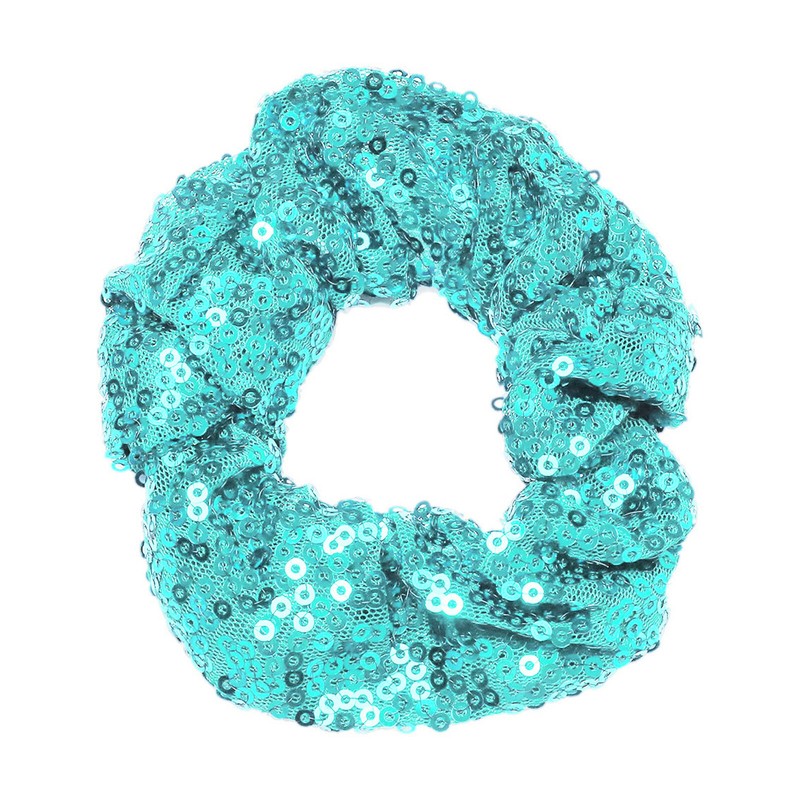 Wide and ruffled scrunchie with shiny sequins, is 12-22cm/4.7-8.7 inch in circumference.