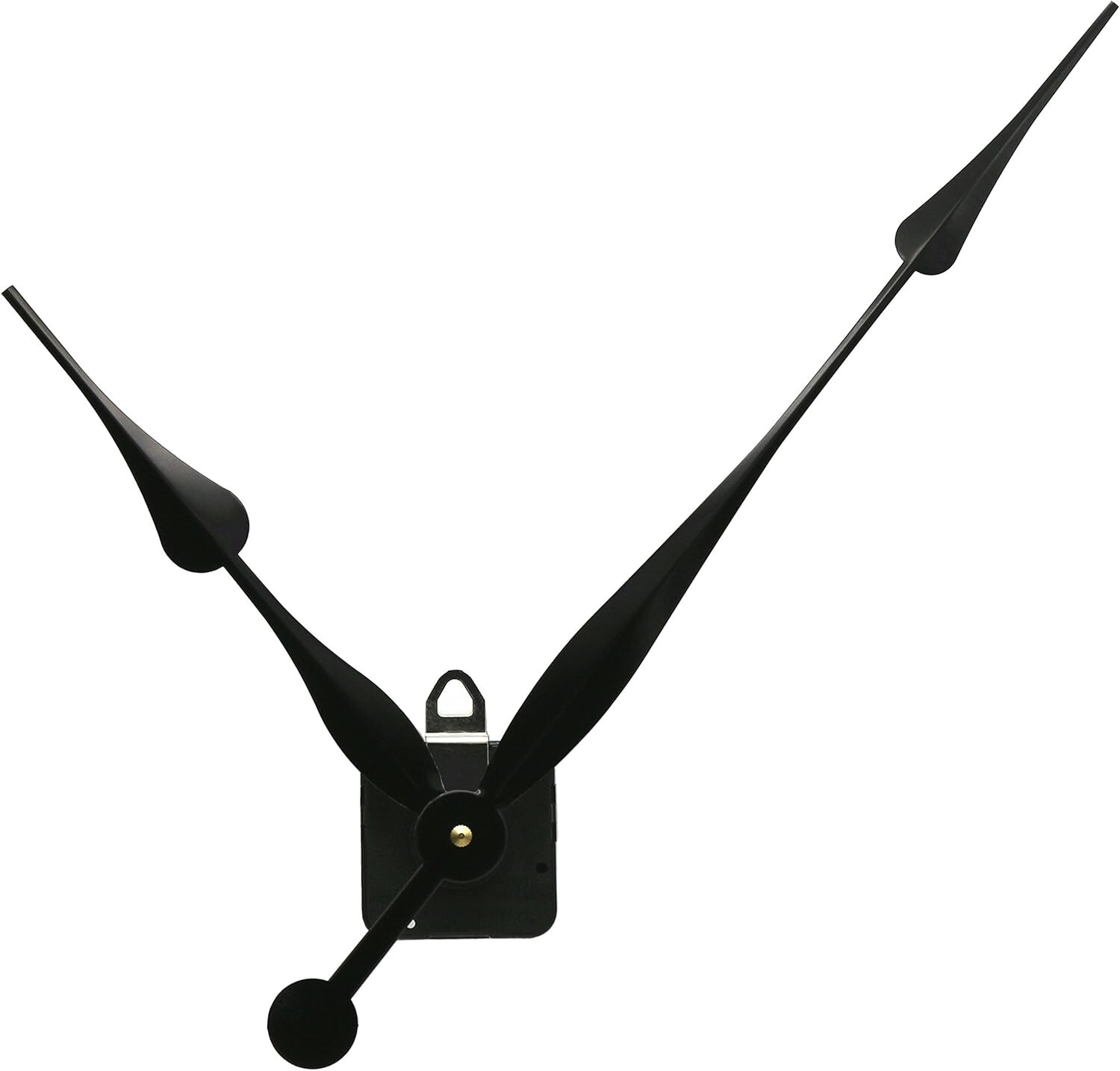 Hand Sizes: Exceptional size from the hole center to the tip; the hour hand measures approximately 203 mm (8.0 inches), while the minute hand spans about 305 mm (12 inches).