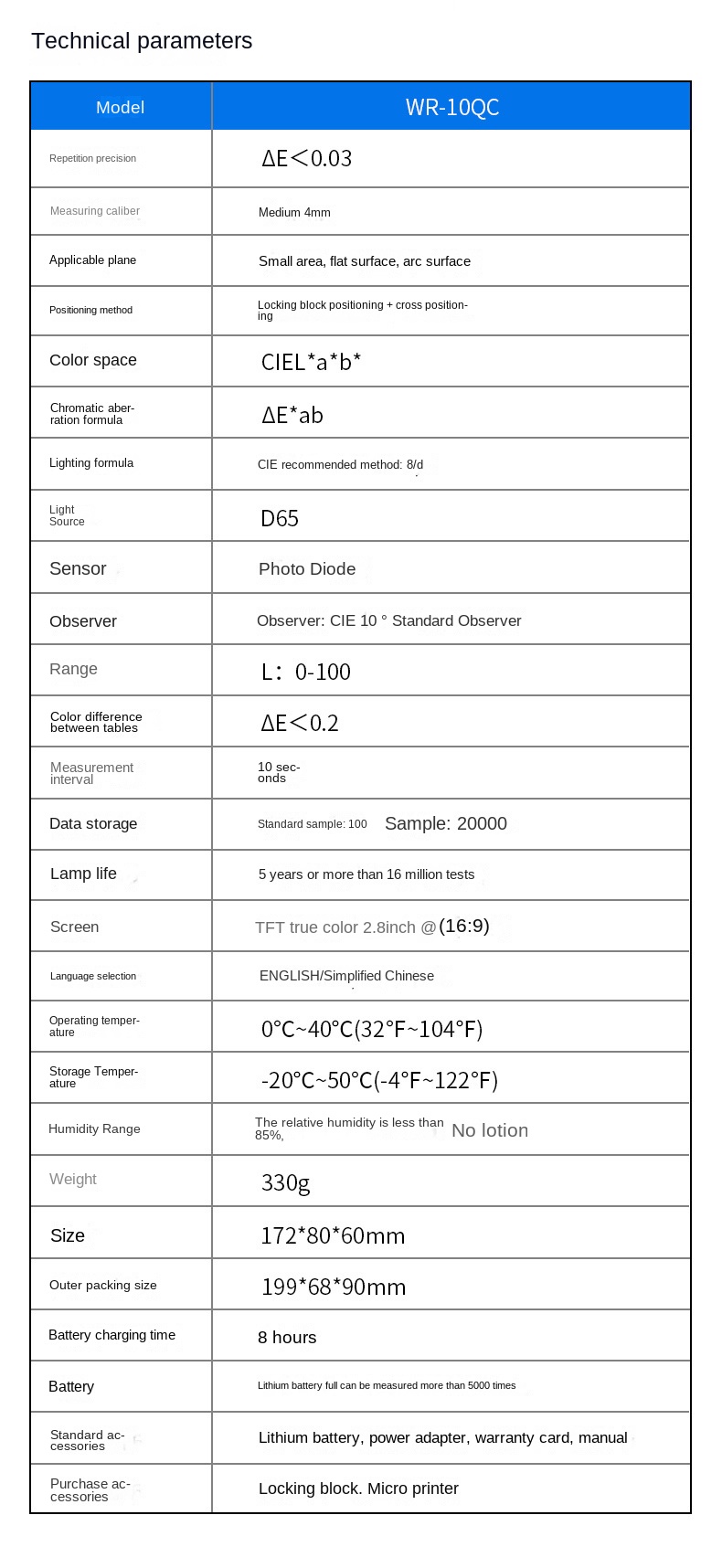 WR-10QC Colorimeter color analysis contrast colorimeter paint color matching paint plastic
