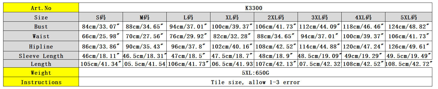 Size Chart: 1inch=2.54cm