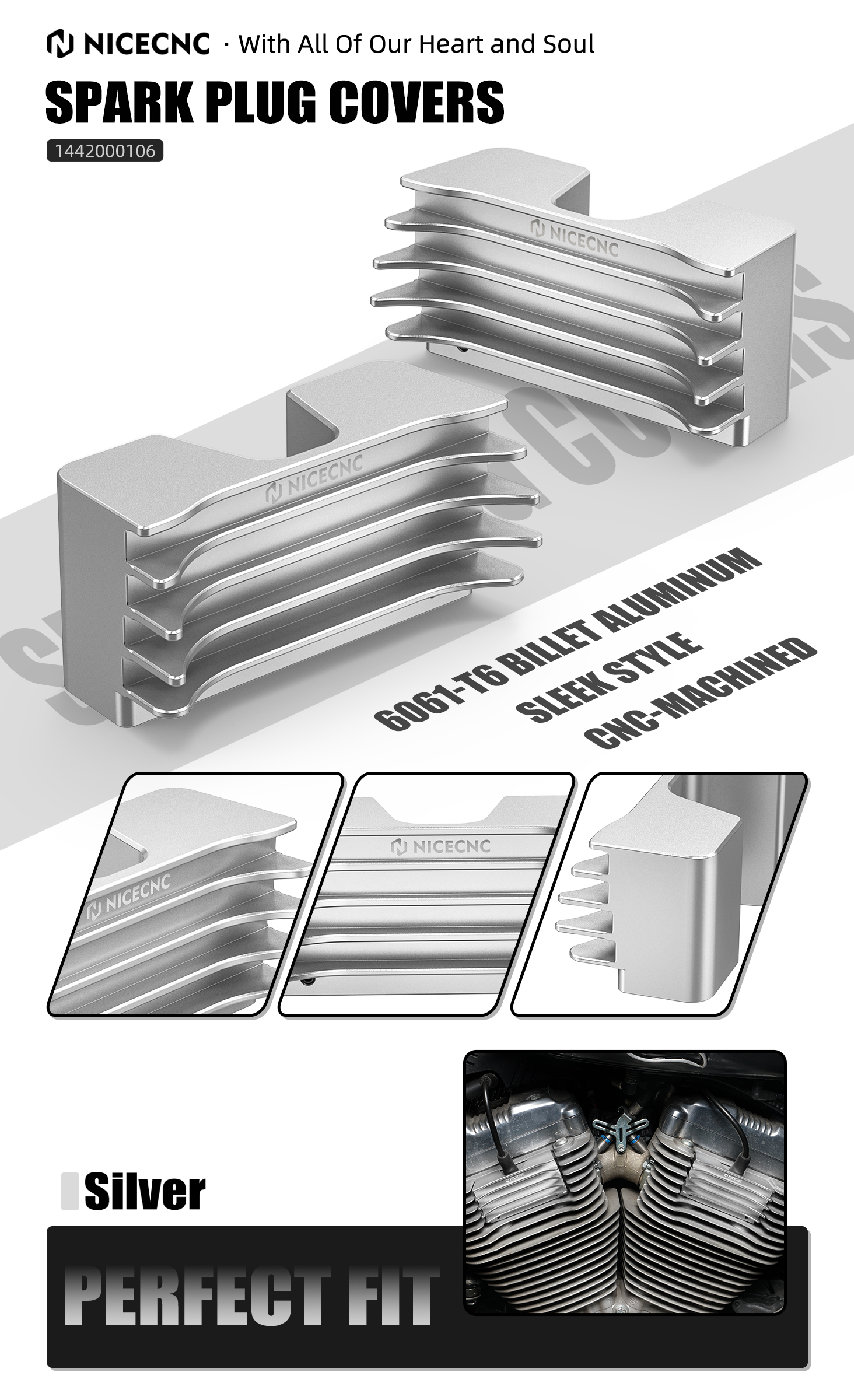 【Striking Look】Features attention-grabbing and stylist design to complement the engine look, We have improved the installation method of our covers, making the head bolts and spark plug area more discreet and improving the overall aesthetics.
