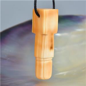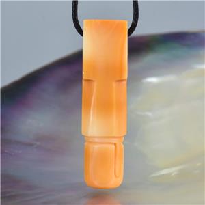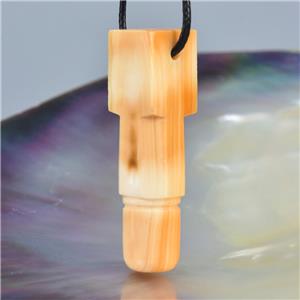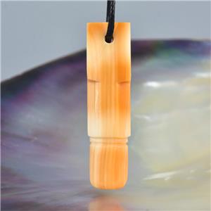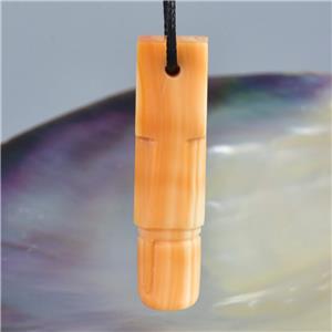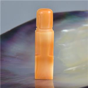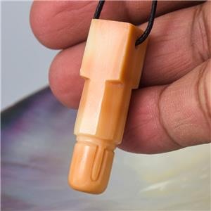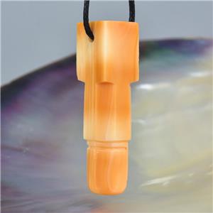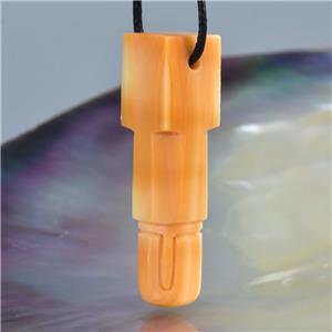 HINDU SHIVA LINGAM LINGA CARVED APRICOT TRUMPET SHELL FOCAL BEAD PENDANT AMULET