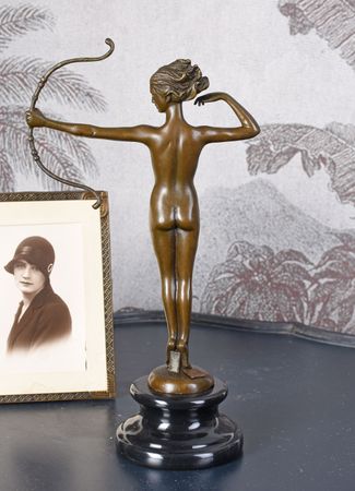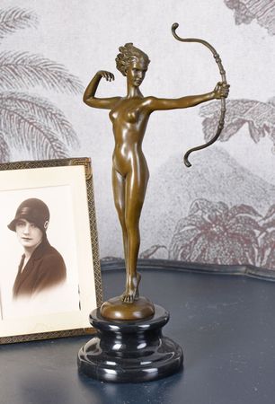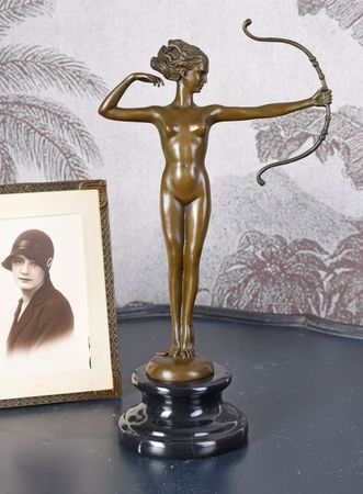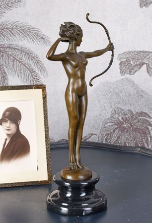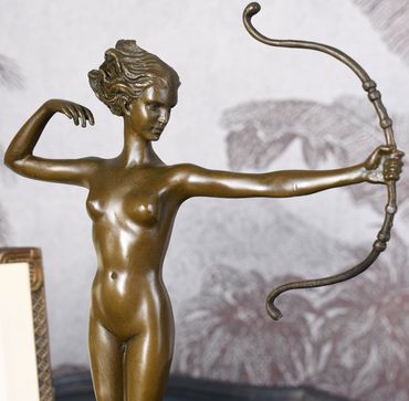 El Estatua de bronce "Villa Metropolis" Es una escultura impresionante en Estilo art decoEl uno Arquero Representando: una figura poderosa y elegante de la mitología romana.