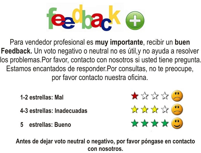 FEEDBACK : according to the regulations of eBay : " The feedback left can not be changed or removed. Typically they become a permanent part of the user profile and are shown to the entire eBay Community . Users can be held legally responsible for damages caused to the reputation of a user if their comments are judged in court libelous or defamatory . the same law does not exempt the author of such feedback from their responsibility ' . " PLEASE CONTACT US IF YOU HAVE PROBLEMS THAT MAY HAPPEN : We GUARANTEE 100% SOLUTION . ALWAYS CHECK OUR FEEDBACK PROFILE AND THEY WILL CONFIRM " .