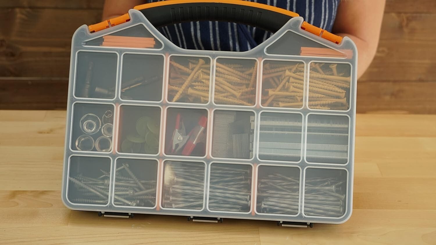 Durable 18-Compartment Screw Organizer with Locking Latches - Compact Design