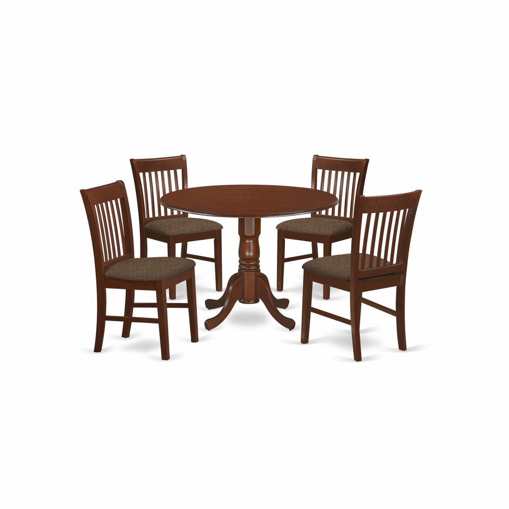 | Package Includes | 5 piece kitchen Round Table with 2 Drop Leaves and 4 Ladder back Chairs with Cushion Seat in a Mahogany finish |